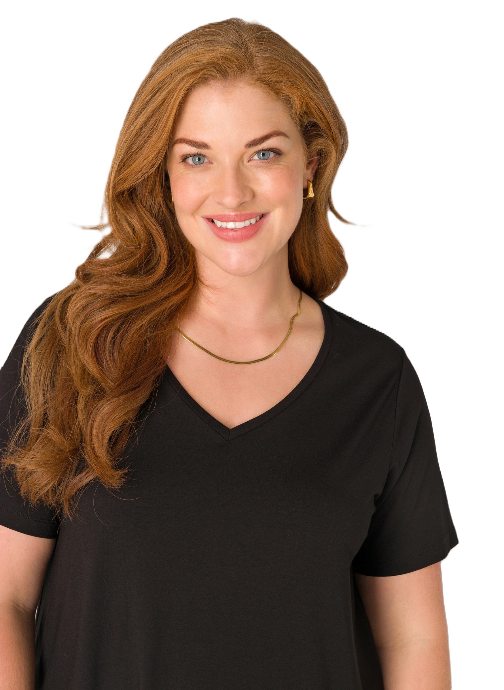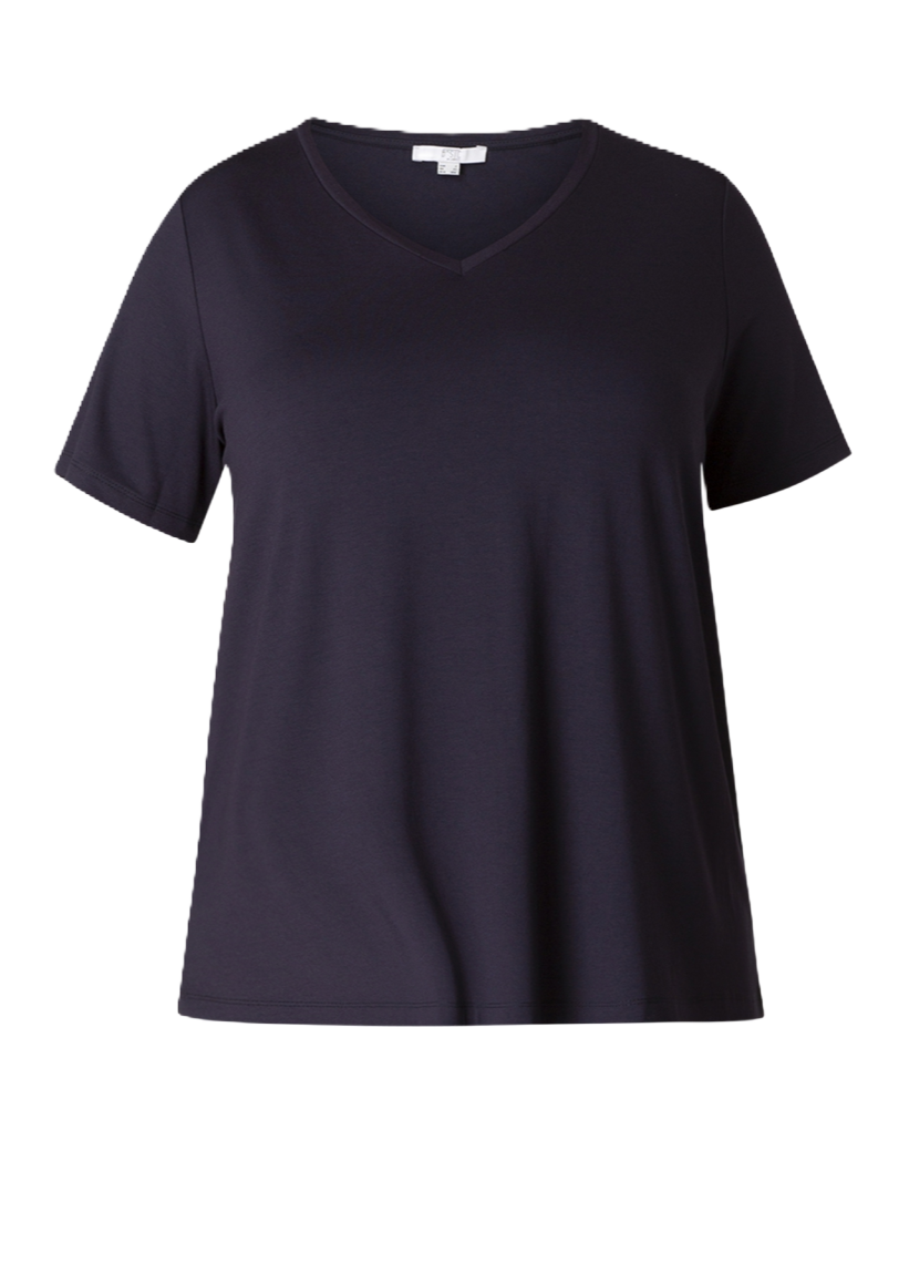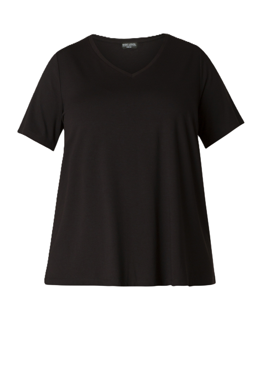 Alba is een recht T-shirt van een soepele viscosemix met een ronde halslijn en een omgeslagen zoom op de mouwen. 72 cm.