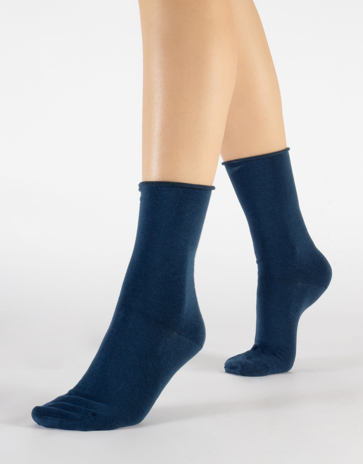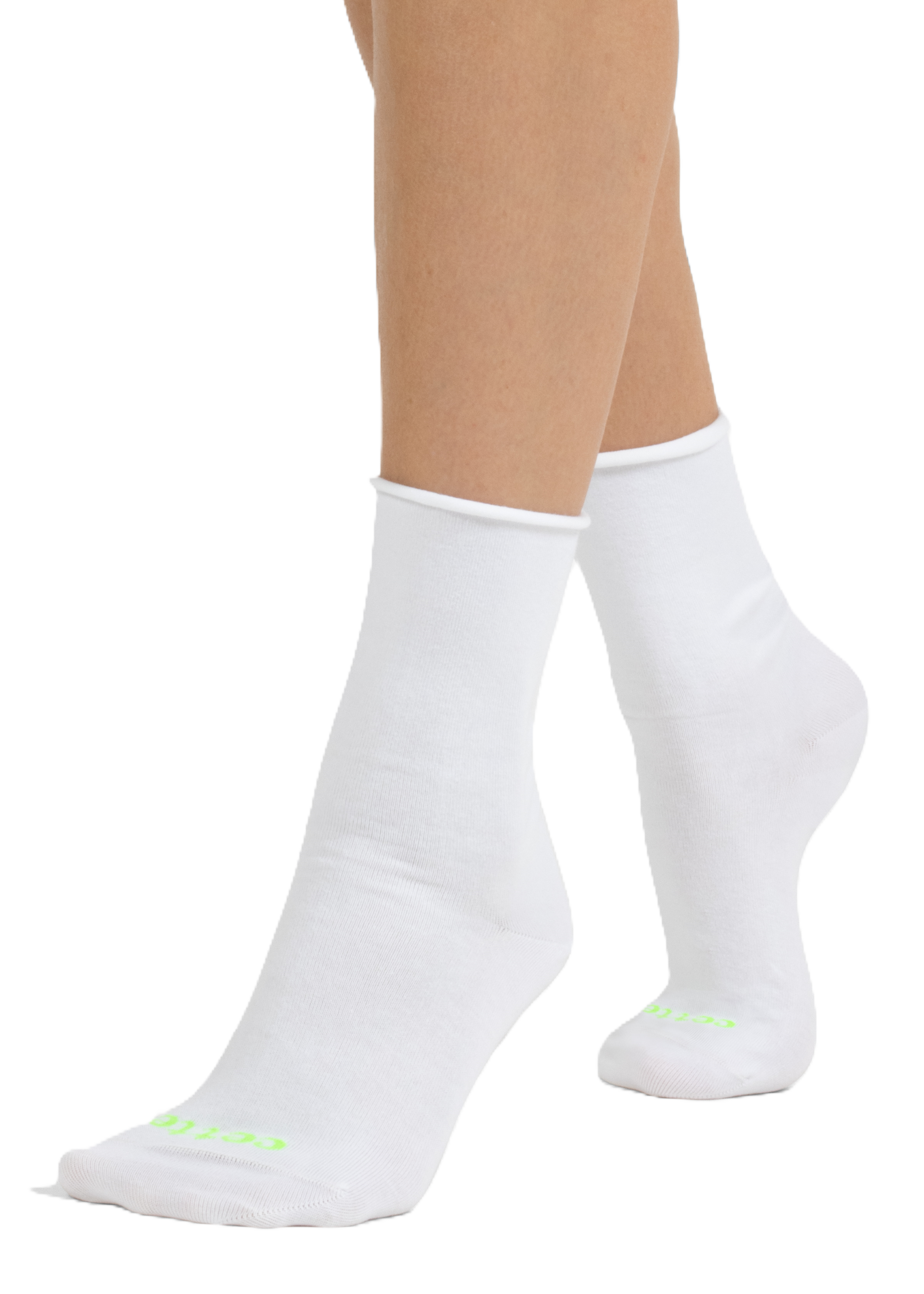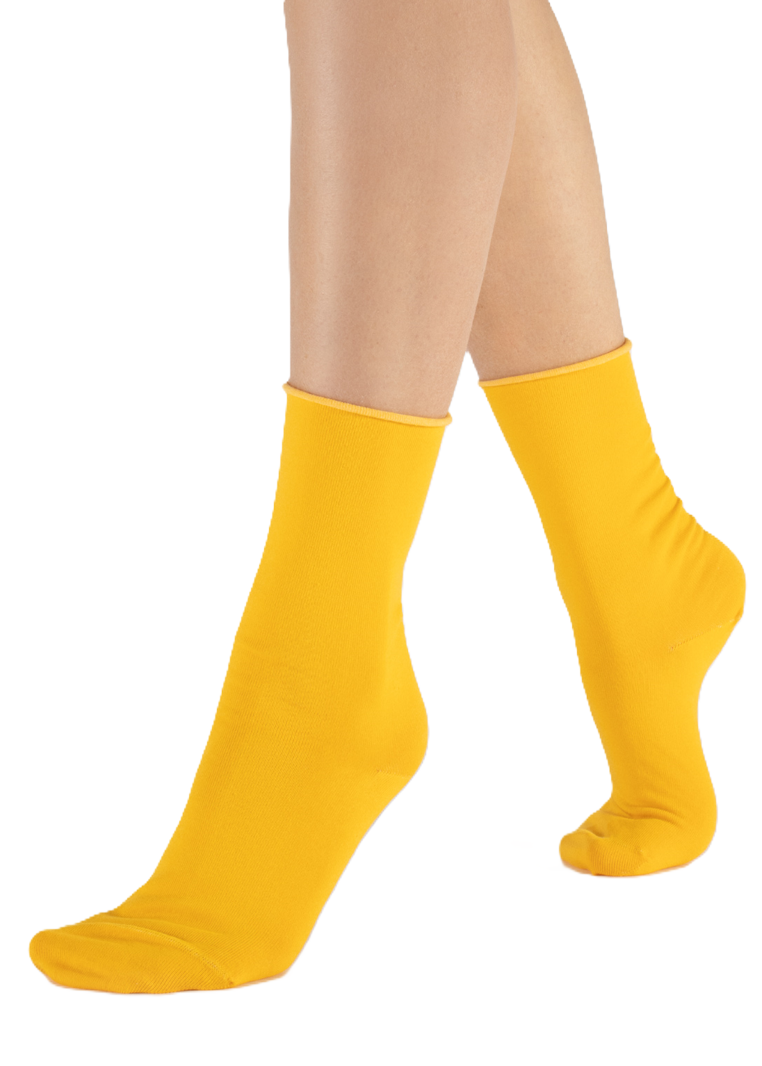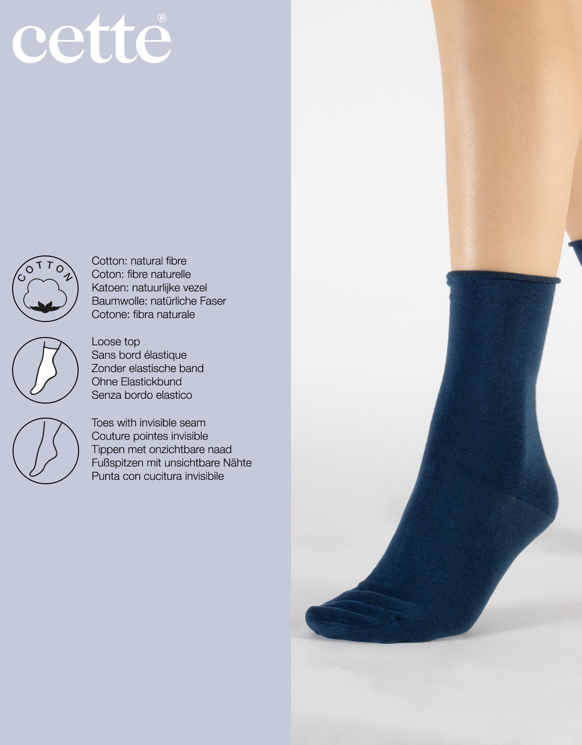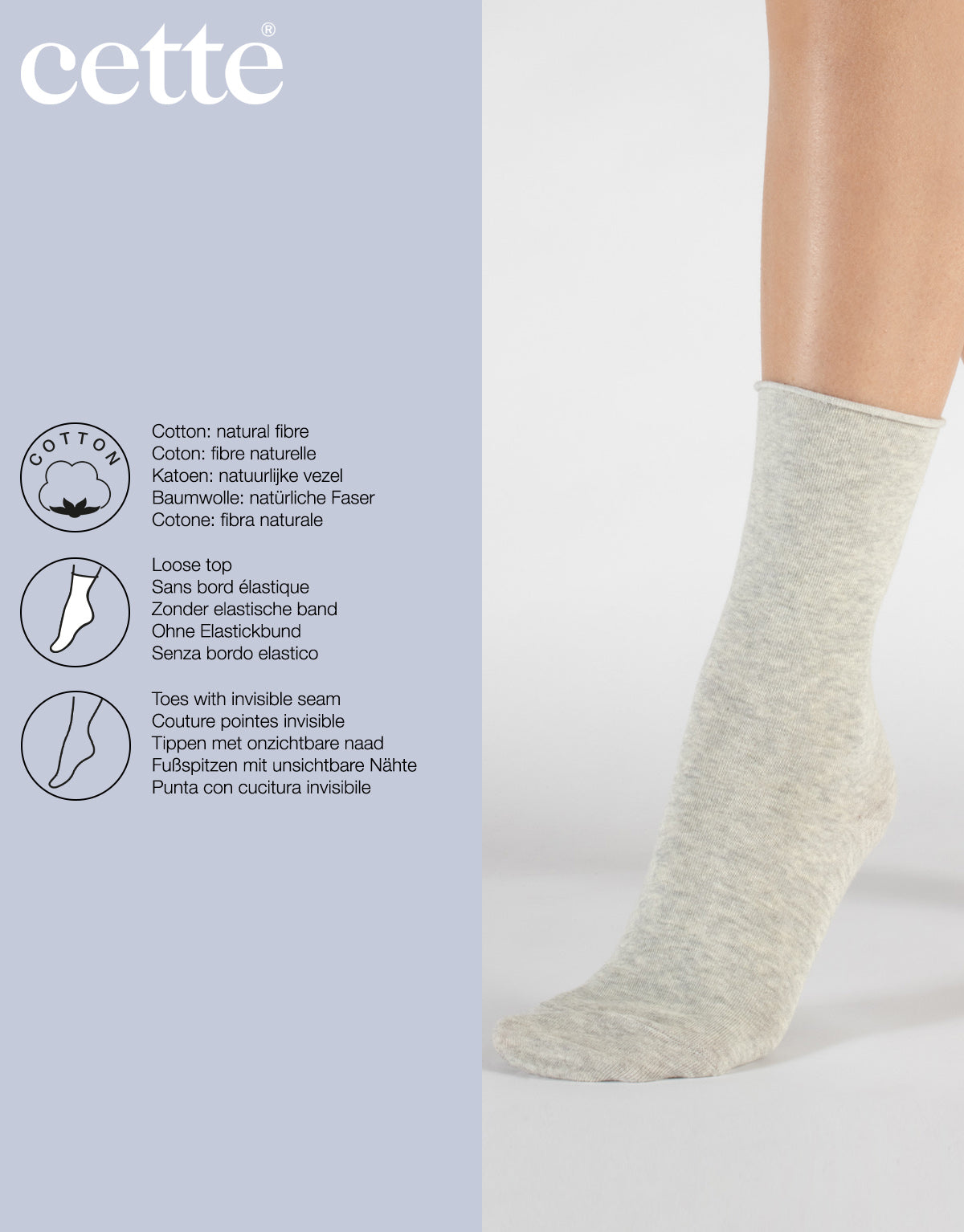 Korte sokjes in zachte katoenmix. Gladde teennaad. Met omgerolde niet knellende boord, super comfortabel.
