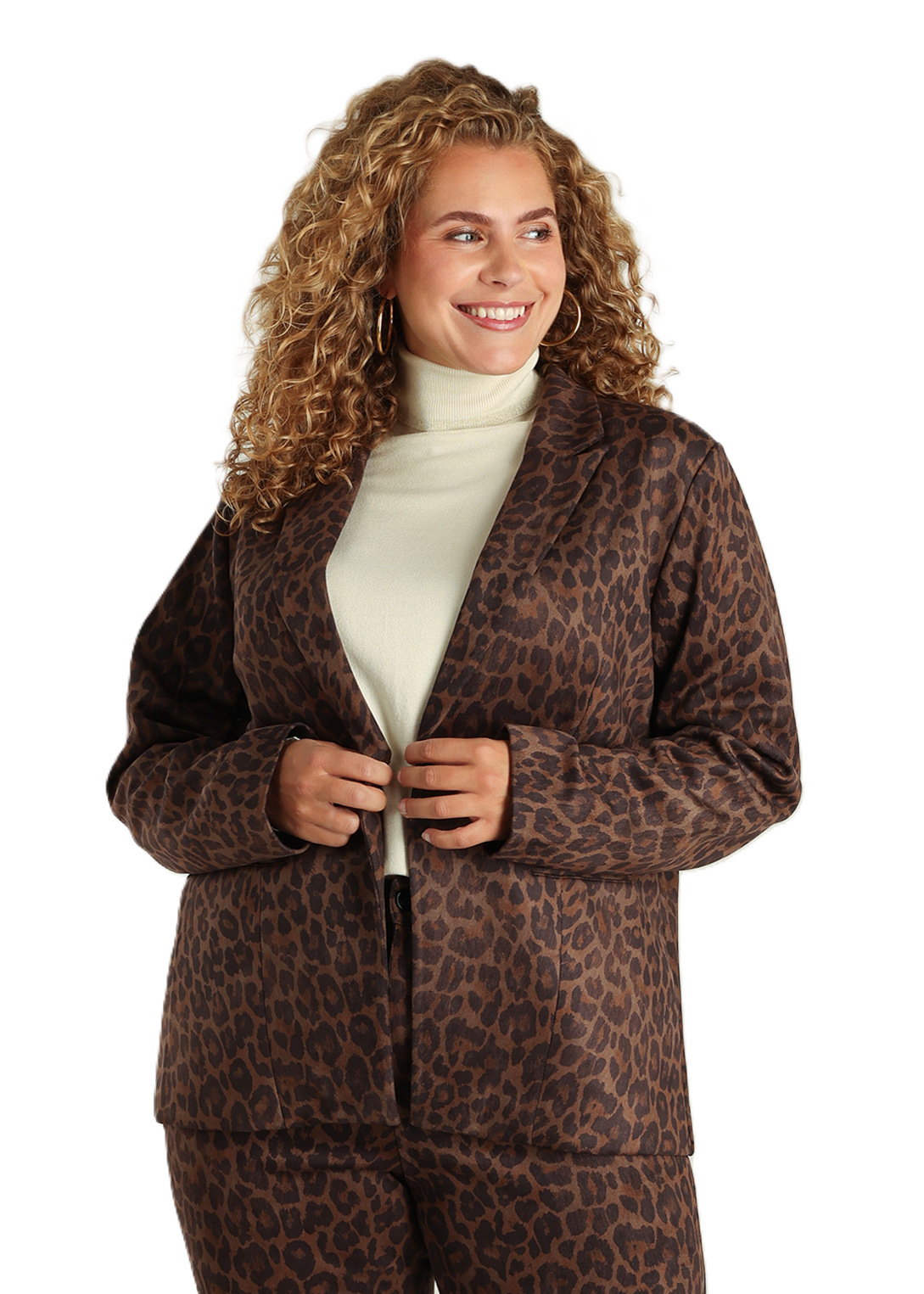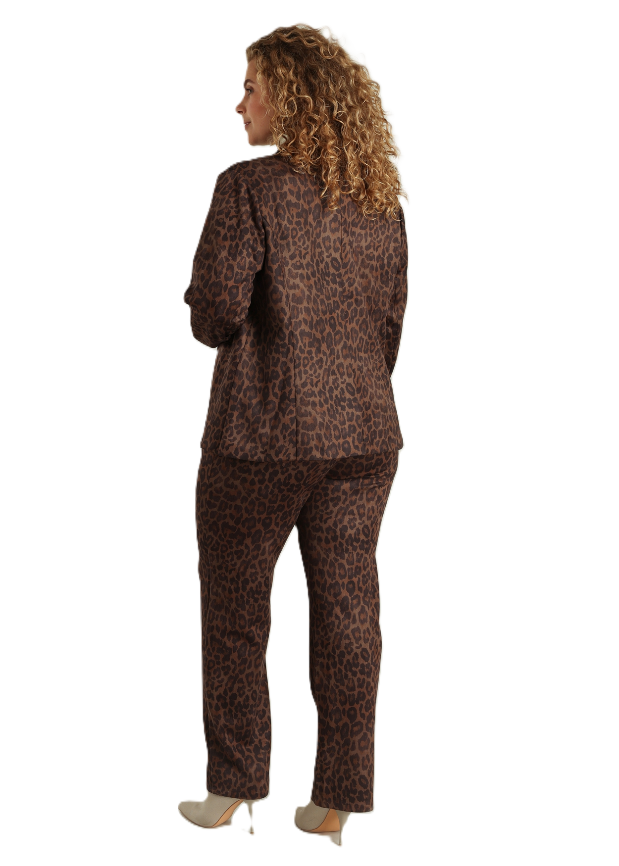 Deze blazer met animal print is een echte krachtpatser in je garderobe. Met een regular fit en scherpe revers combineer je moeiteloos comfort en een strakke look. De enkele knoop sluiting houdt het klassiek, maar de print zorgt voor een spannende twist. Combineer deze blazer met pantalon 5806 voor een total look! Lengte 70 cm.