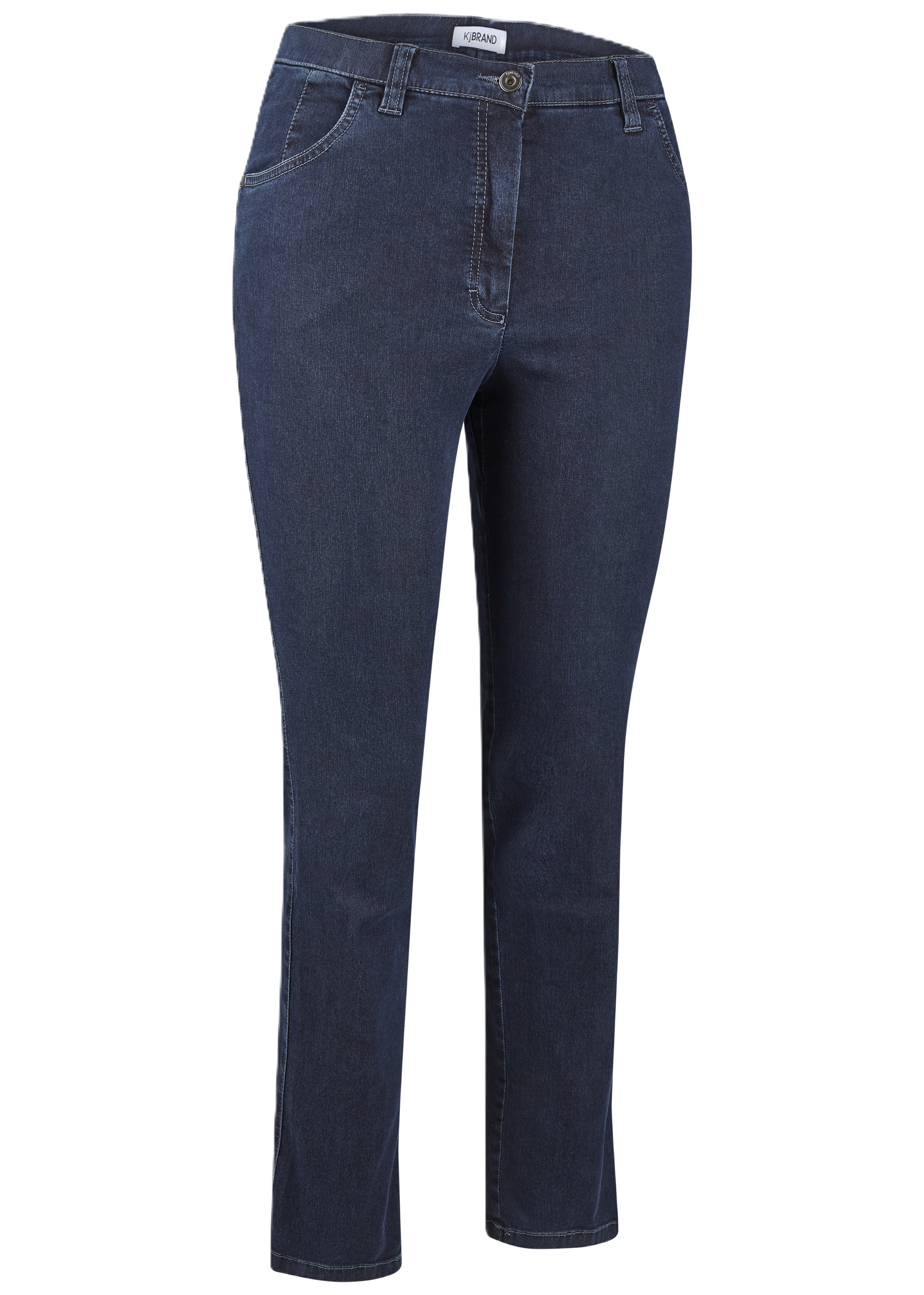 De Betty broek in denim van het merk KjBRAND biedt maximaal comfort en veel bewegingsvrijheid. Het is zeer elastisch (dwarse stretch), past zich aan jouw bewegingen aan en blijft ook na een lange dag in optimale vorm. Deze populaire, modieuze broek met rechte pijpen heeft een lichte glans en ziet er heel verzorgd uit. Als kers op de taart vormt het niet alleen je figuur, het maakt je ook visueel slanker. Deze populaire Betty-vorm is een echte alleskunner.