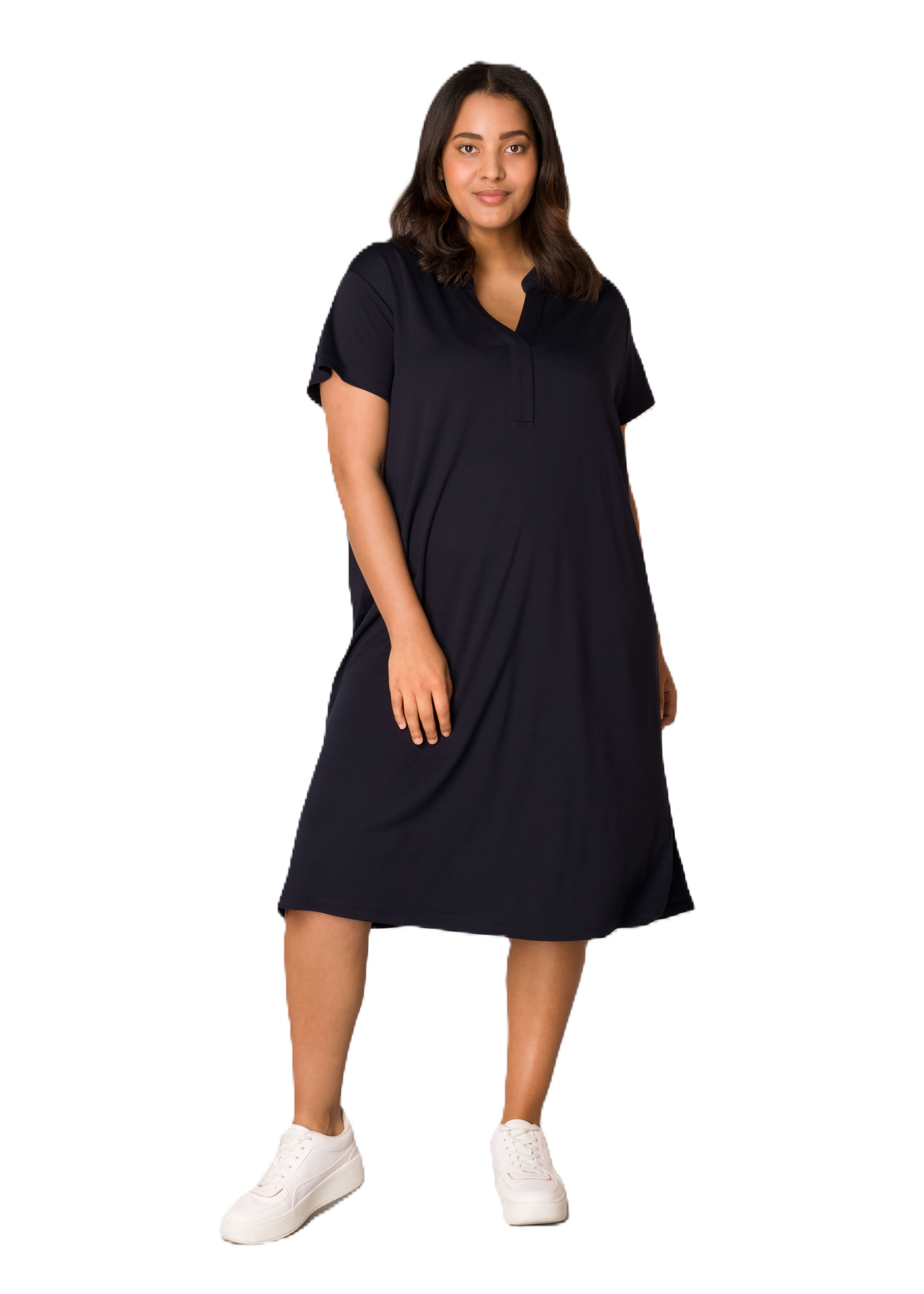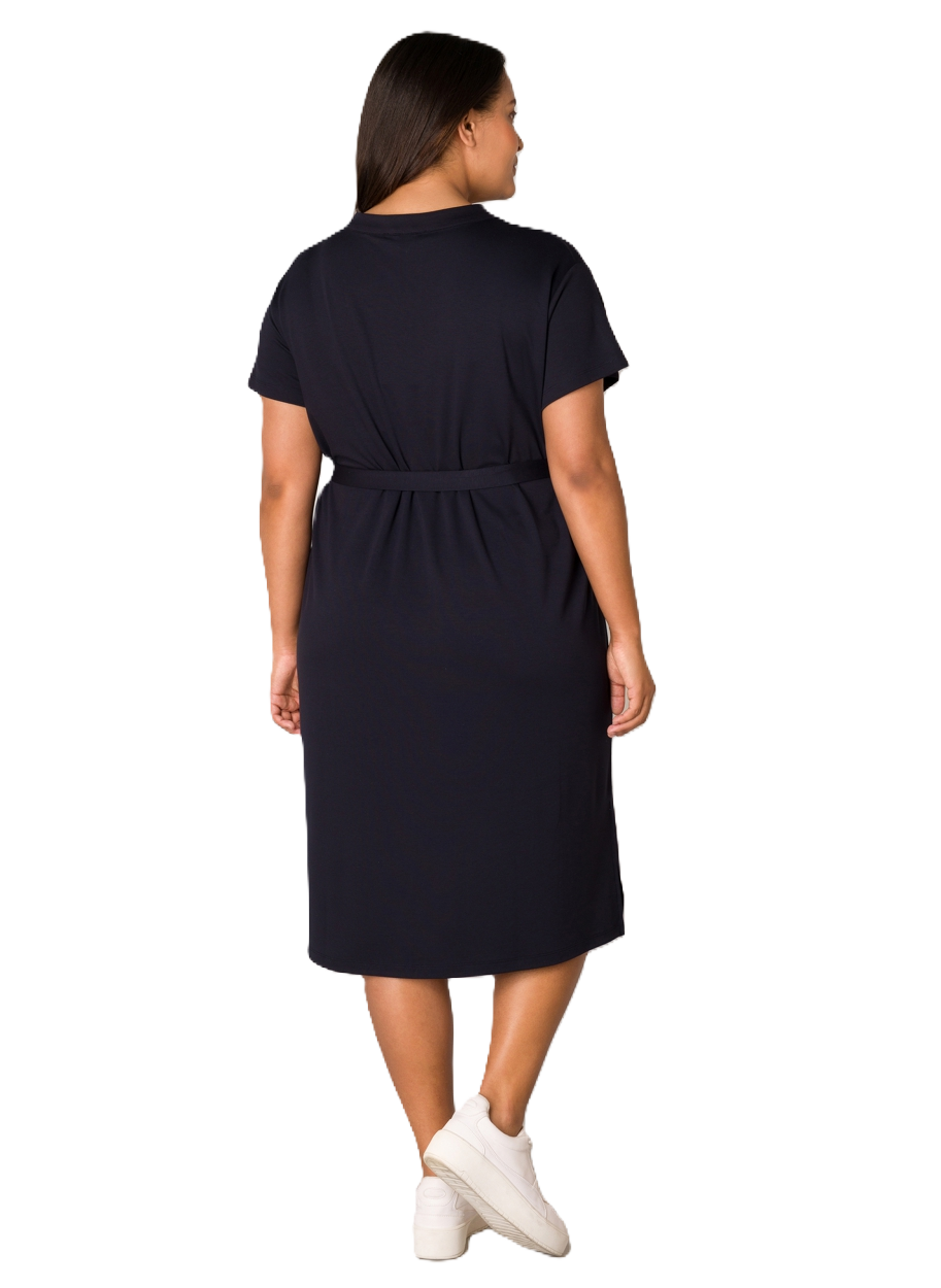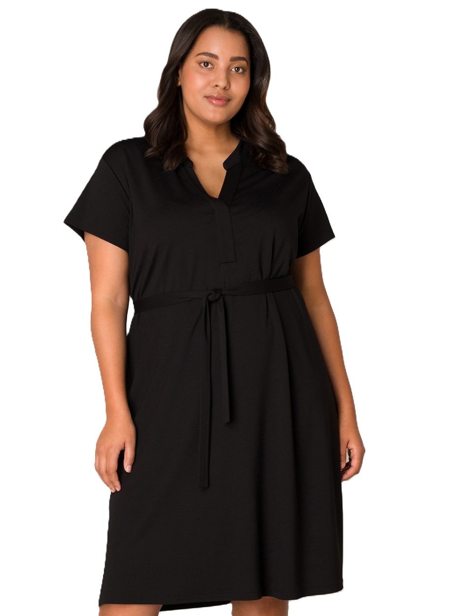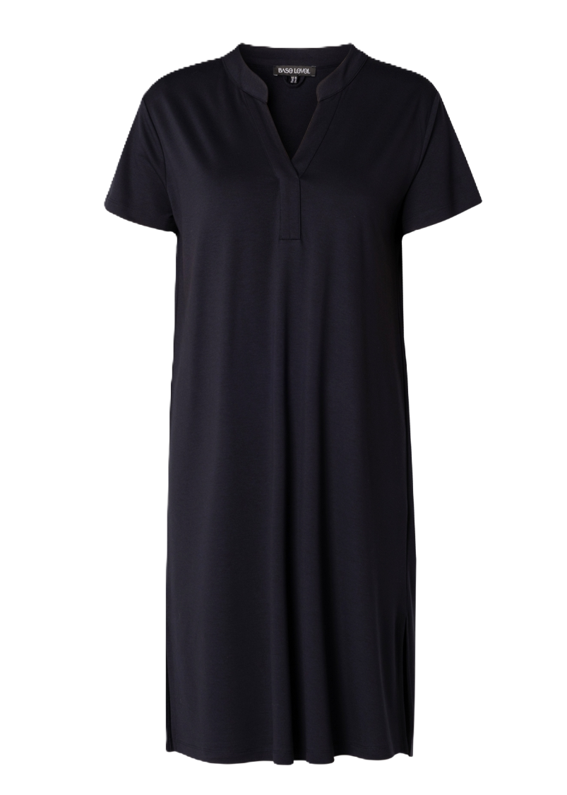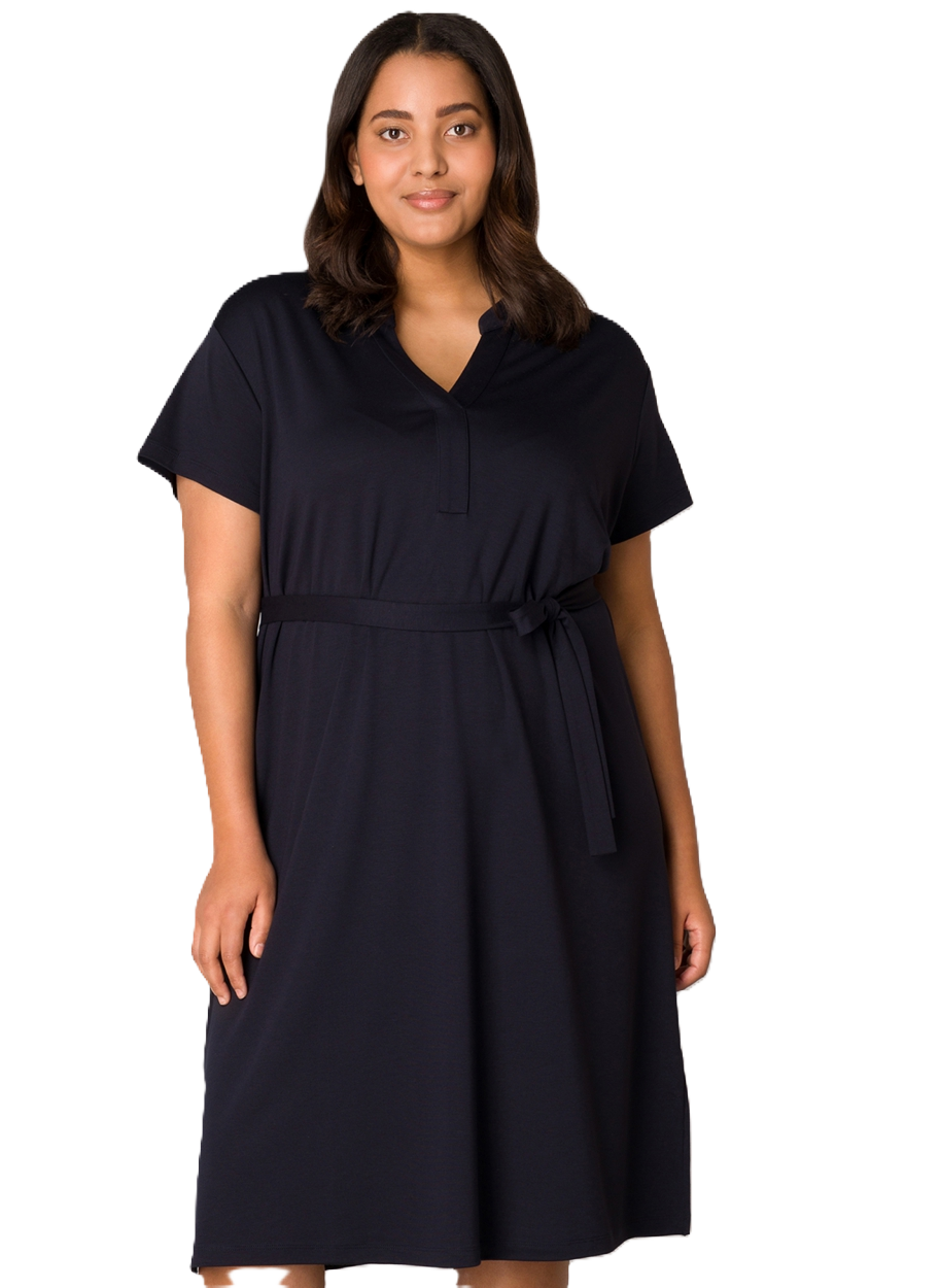 Yenna is een comfortabele jurk in een zachte viscose/nylon kwaliteit. De jurk kan worden gedragen met riem maar ook zonder voor een nog comfortabelere look