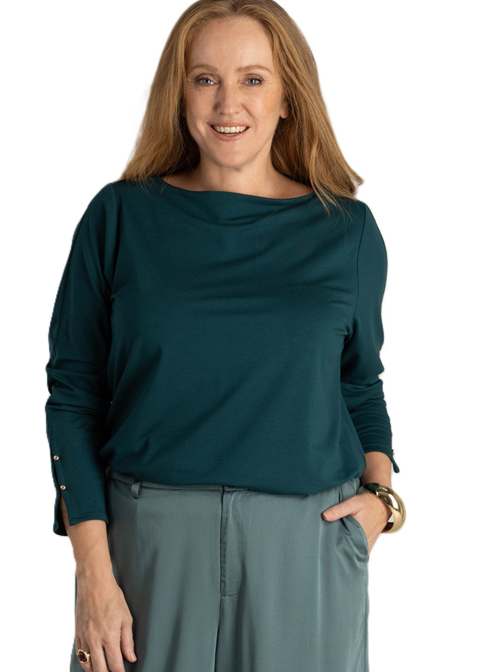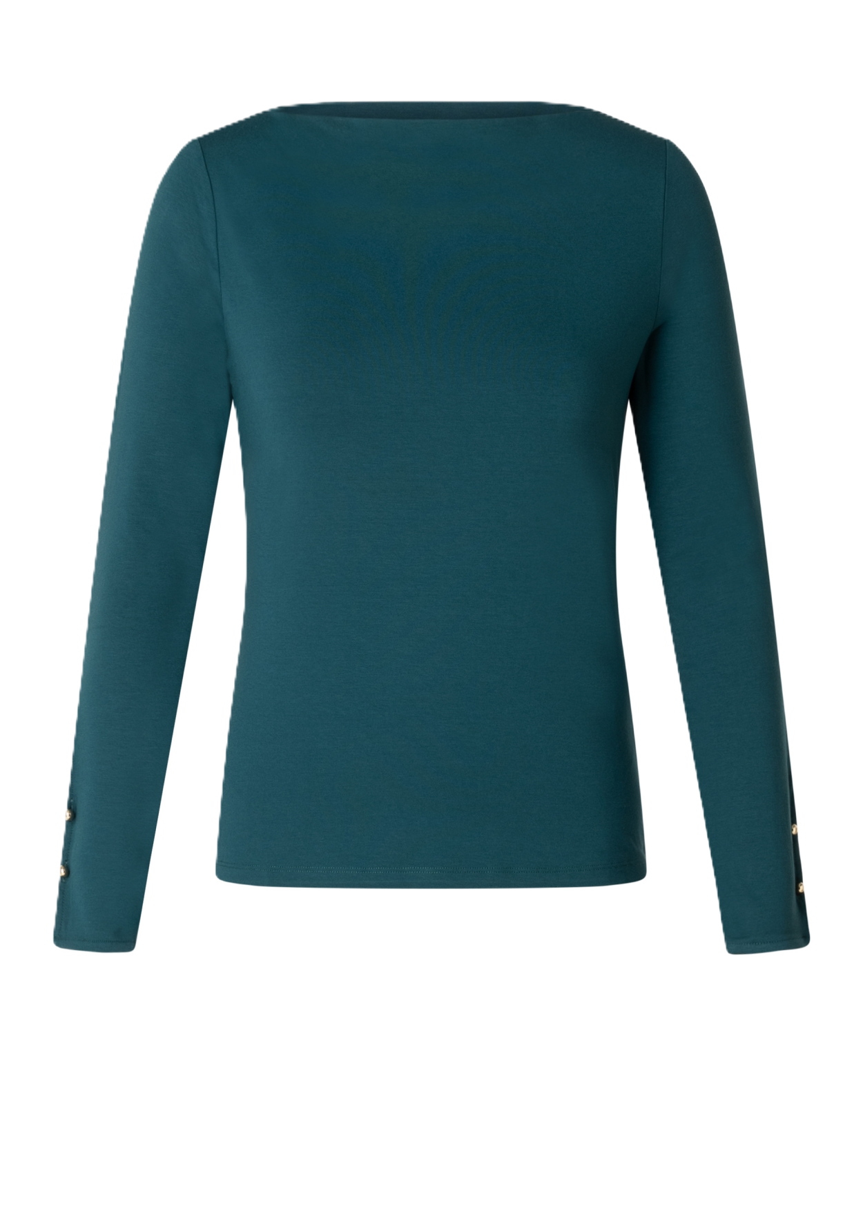 Deze longsleeve is gemaakt van een soepele jersey kwaliteit die zacht aanvoelt en prettig meebeweegt. Het model heeft een boothals en knoopdetails op de mouwen voor een verfijnd accent.