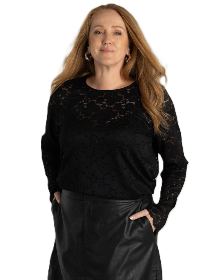 Deze kanten top is echt prachtig! Zacht, stretchy en met die geschulpte rand gewoon supervrouwelijk. En het leuke is: hij staat niet alleen mooi op zichzelf, maar ook als accent onder een grove trui. Zo zie je net een randje kant subtiel, maar zó leuk.