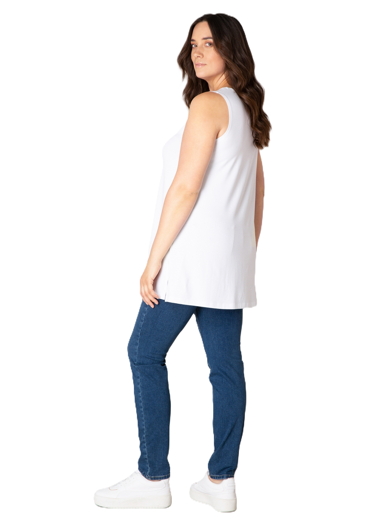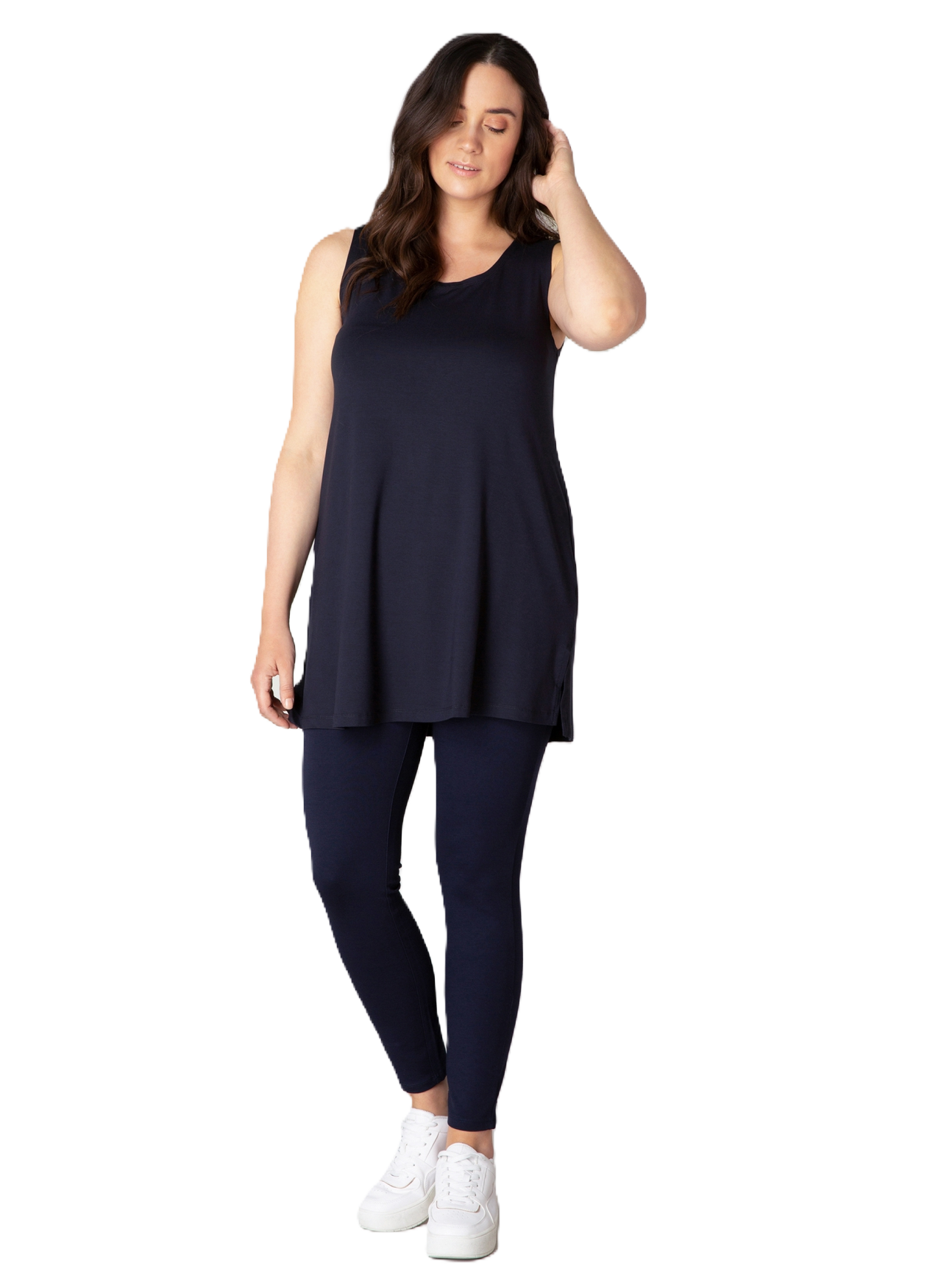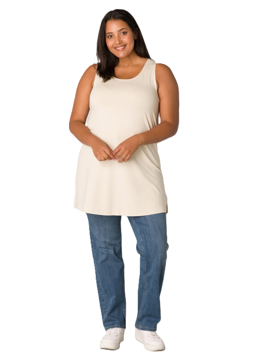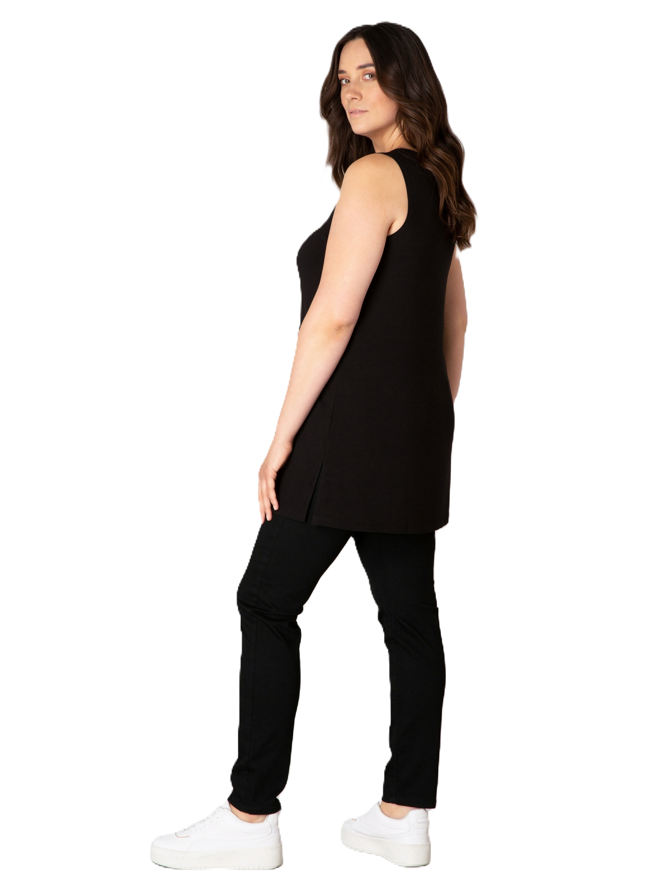 Abbigail is een halflange A lijn top van een zachte tricot viscose mix. Het model heeft een ronde hals en zijsplitten aan de onderkant. Lengte 82,5 cm.