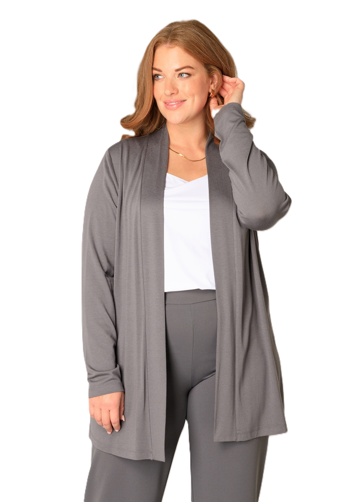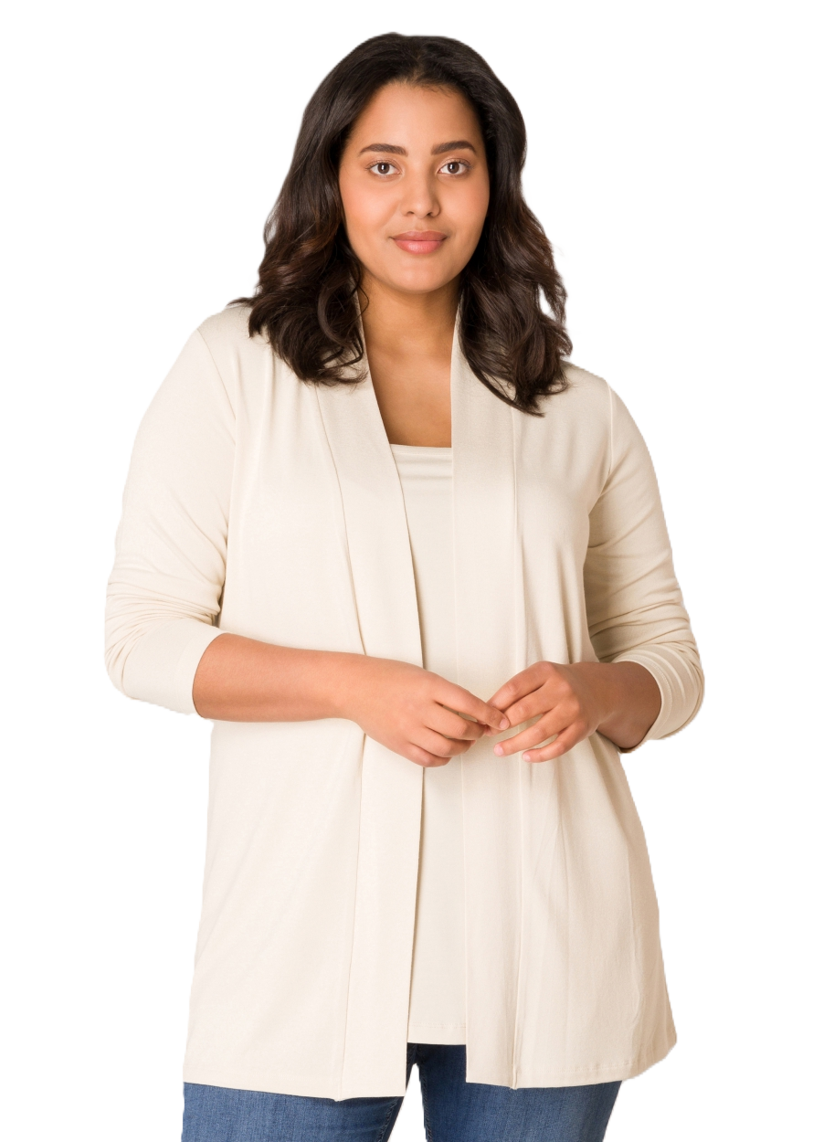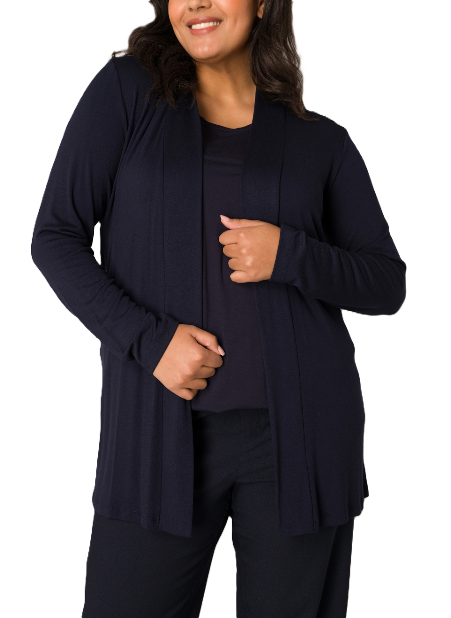 Ayla is een fijngebreid vest van een zachte viscosemix. Lengte 80 cm.