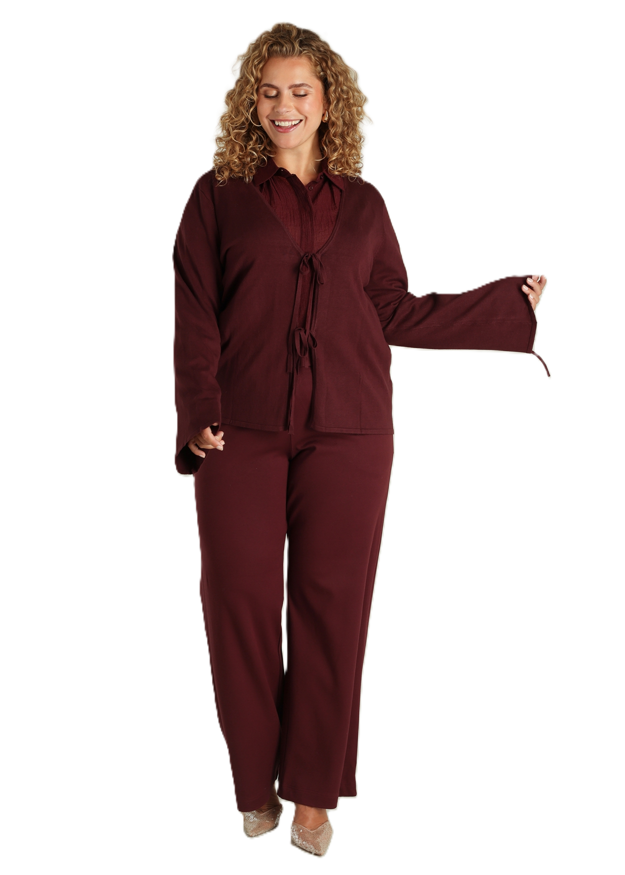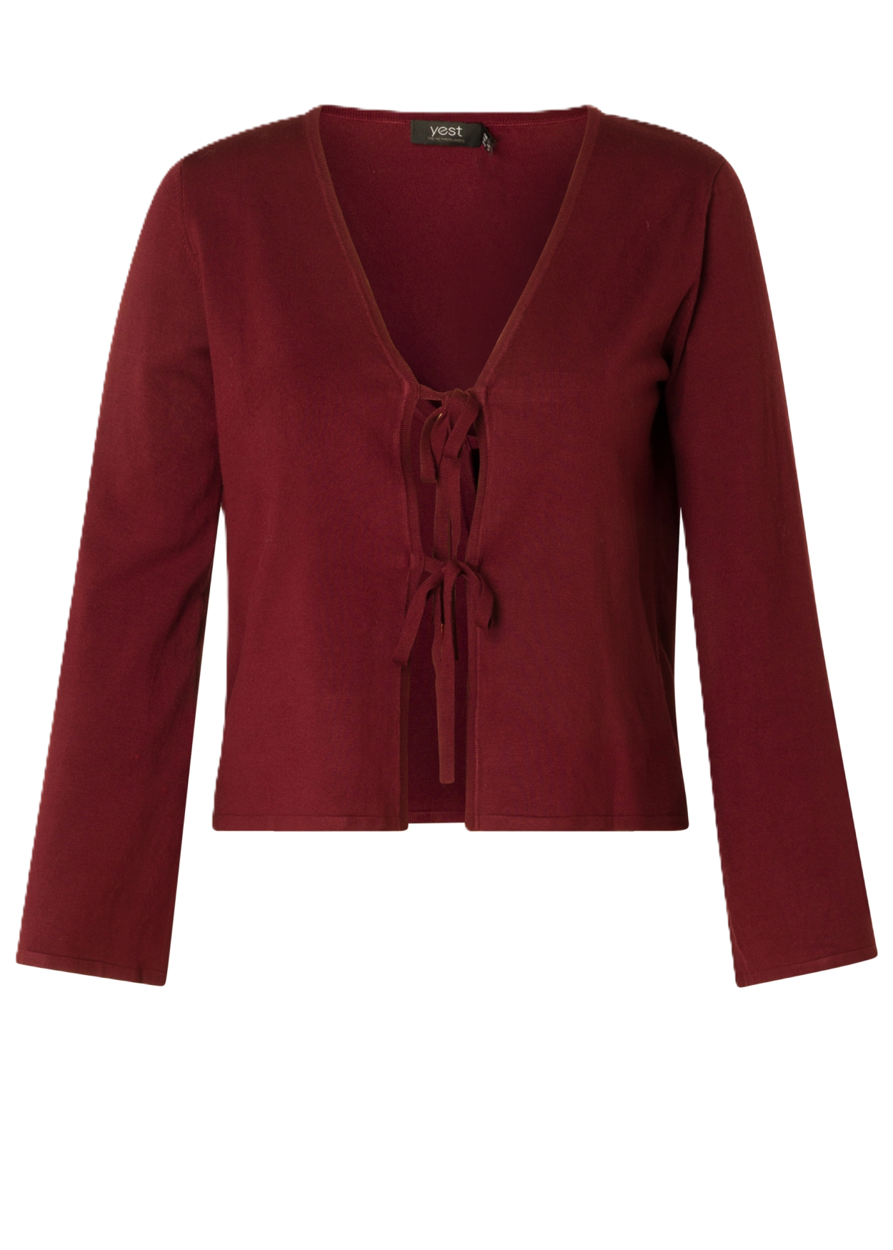 en knit met karakter: dit vestje heeft een recht model en sluit met fijne strikjes aan de voorkant. De portkleur geeft warmte aan je outfit, terwijl de licht uitlopende mouwen voor een relaxte look zorgen. Een veelzijdig item dat je moeiteloos op een jeans of rok draagt. Lengte 65 CM.