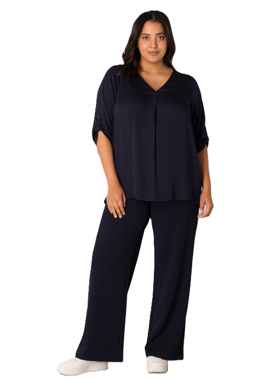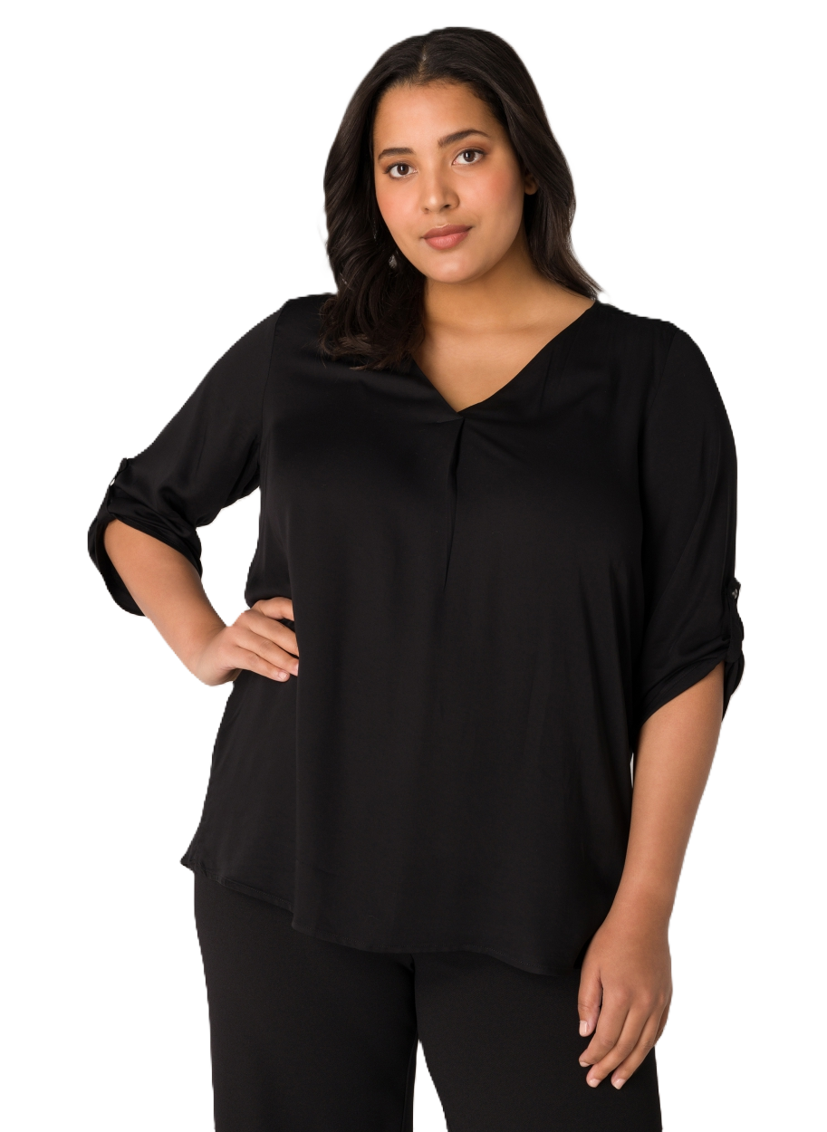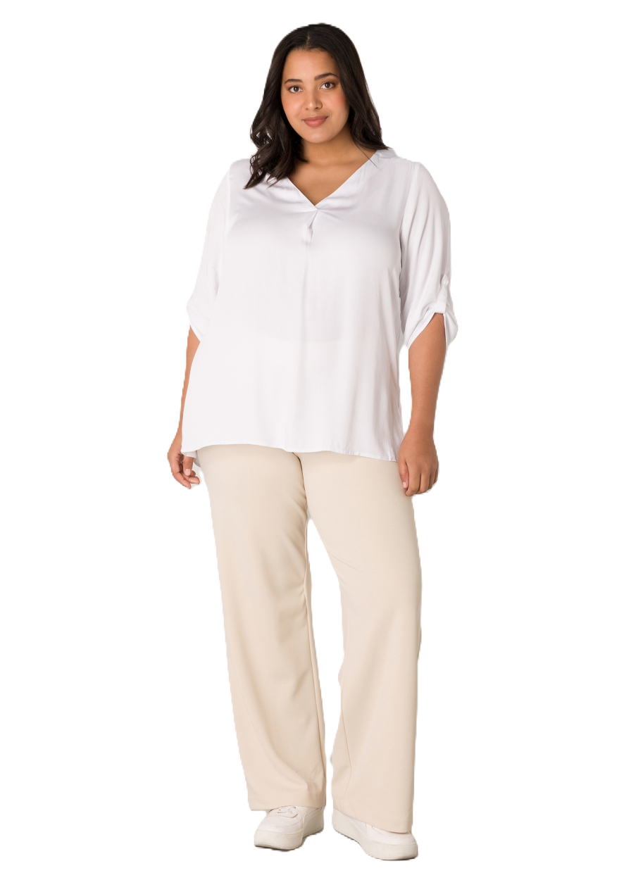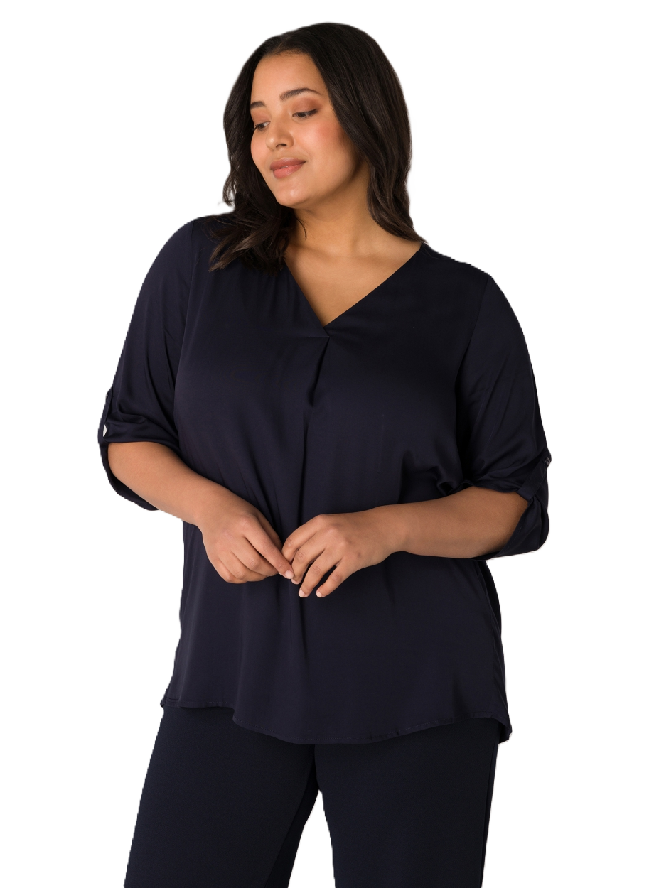 Blouse Yanina is gemaakt van een zachte Lenzing Ecovero, een materiaal gemaakt van houtpulp uit gecertificeerde bronnen. Deze vezels hebben een EU-milieukeurmerk gekregen voor materiaal, productie en distributie. De blouse heeft een driekwart mouw die kan worden opgerold en vastgezet door een knoopsluiting en is verkrijgbaar in de kleuren white, dark blue en black.