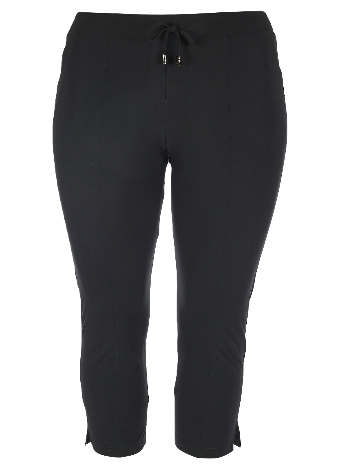 3/4 Pantalon Sporty Chic in de normale travel kwaliteit met een koordje in de boord. Mooie slimfit capri, binnenbeenlengte 56 cm.