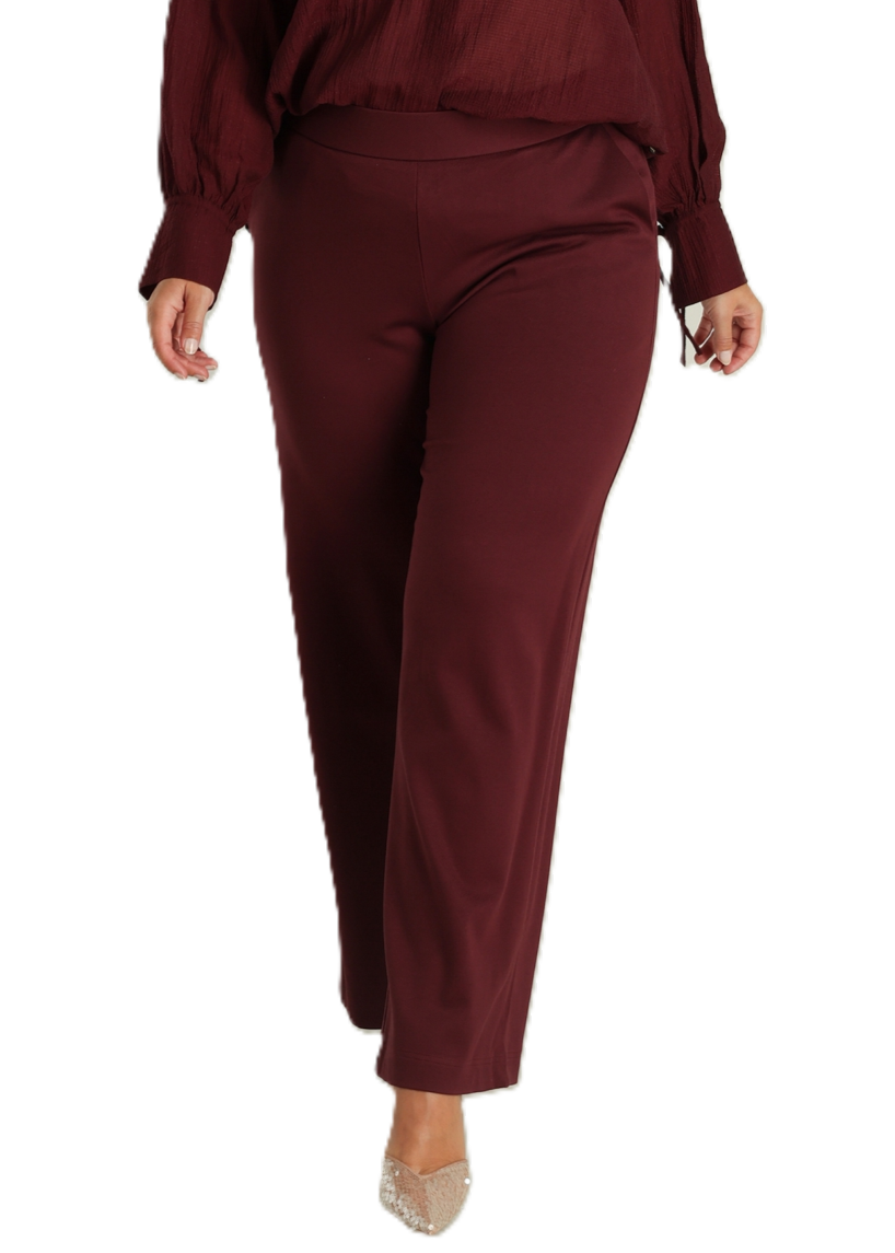 Superfijne zachte pantalon in een fijne jersey kwaliteit. Deze pantalon heeft een zachte elastische tailleband, steekzakken en kleine paspelzakjes achter. De pijpen vallen wijd en recht.