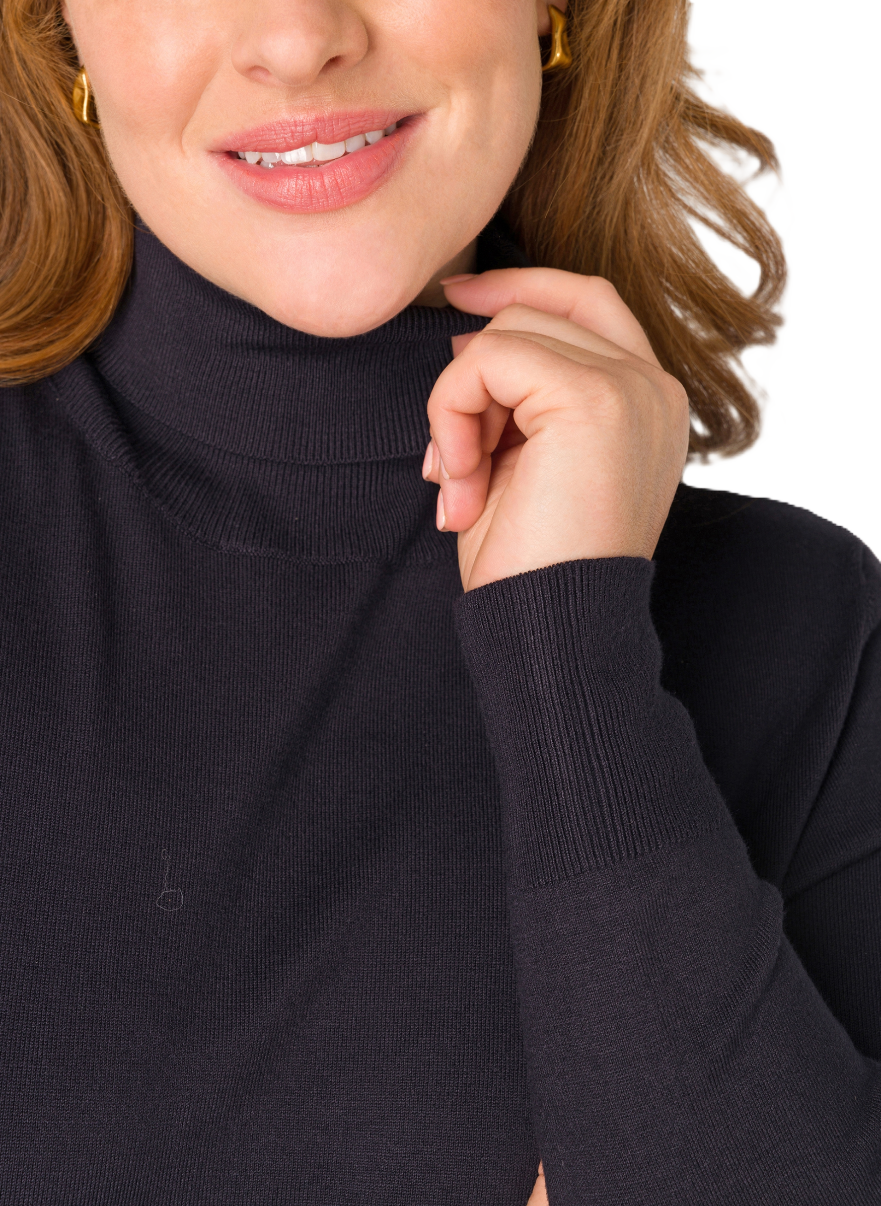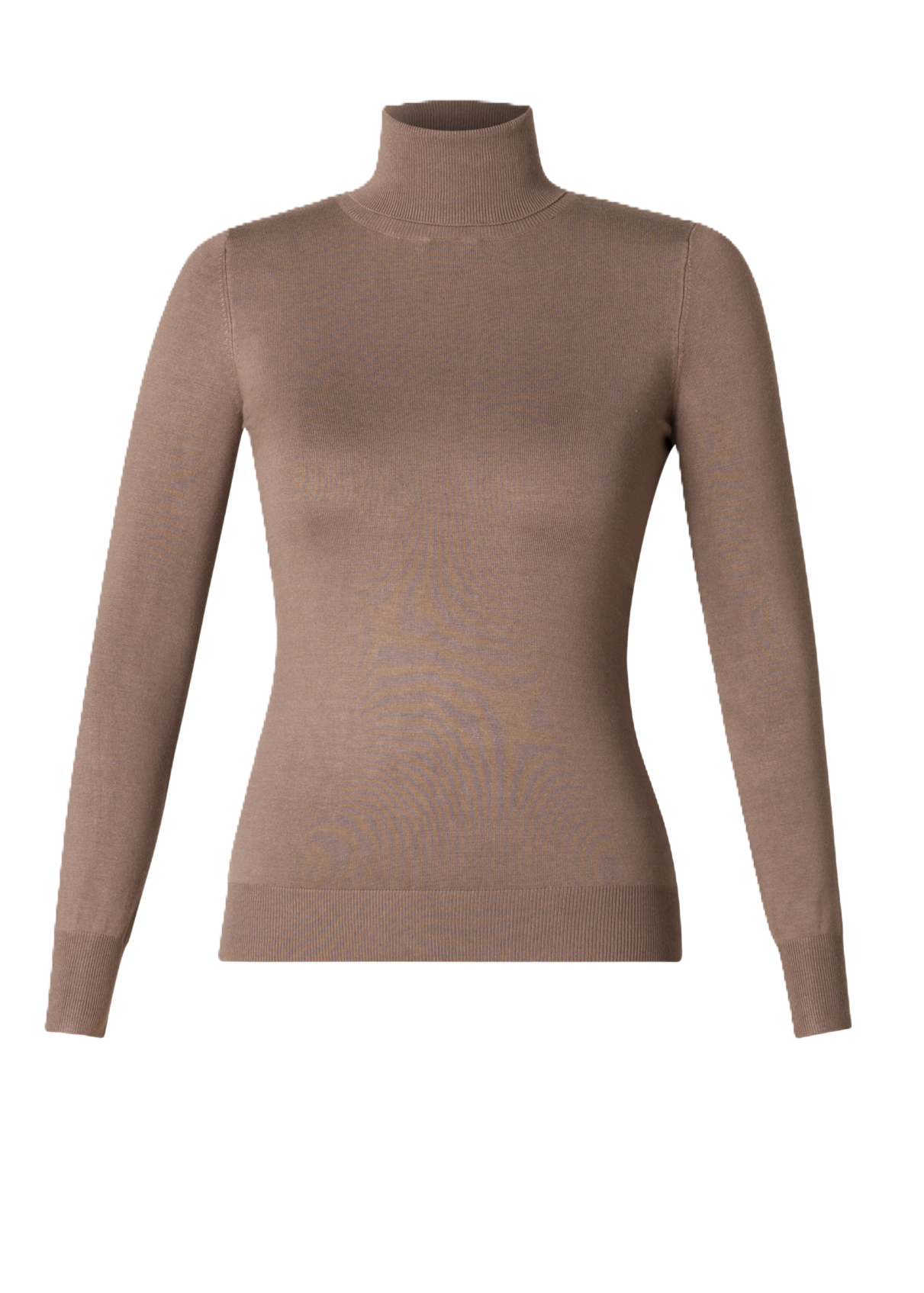 Yuena is een aansluitende coltrui in een fijngebreide viscosemix.