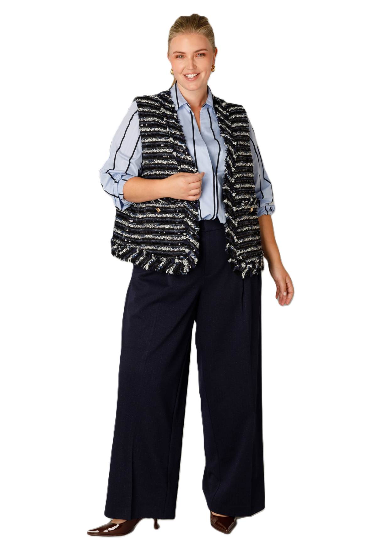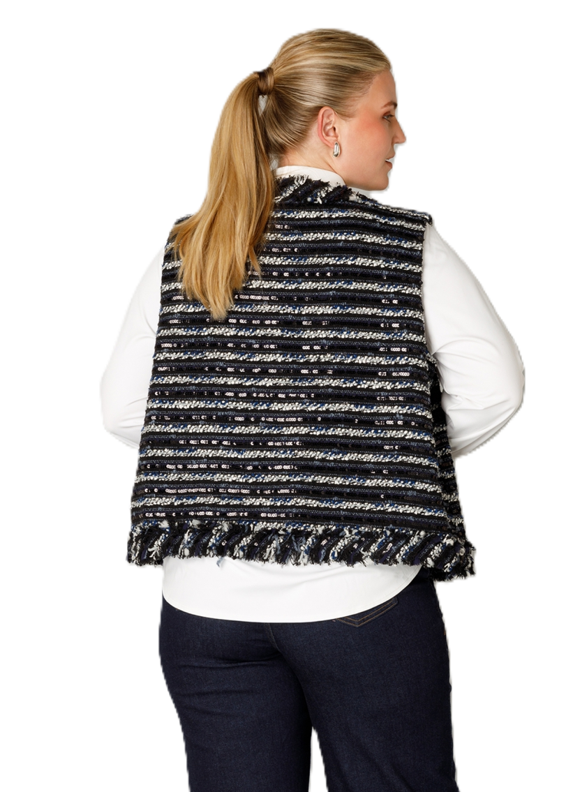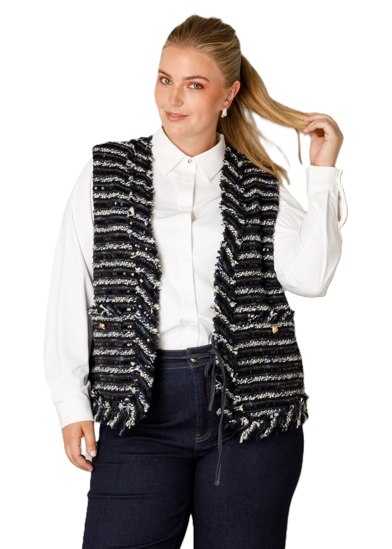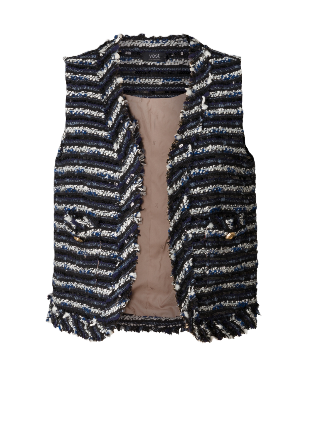 Dit gilet heeft een rijke, gestructureerde look dankzij de mix van verschillende stoffen en kleuren. Met een zachte voering draag je ?m comfortabel, en het is een ideaal item om je outfit snel een upgrade te geven.