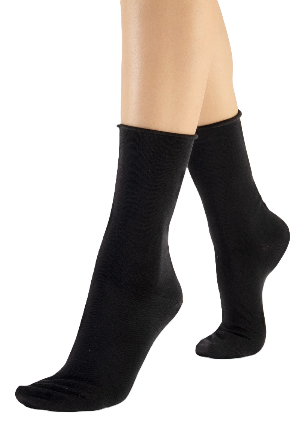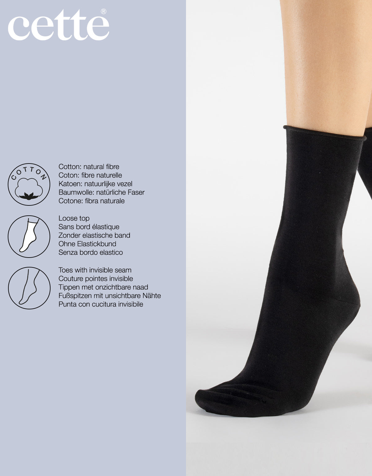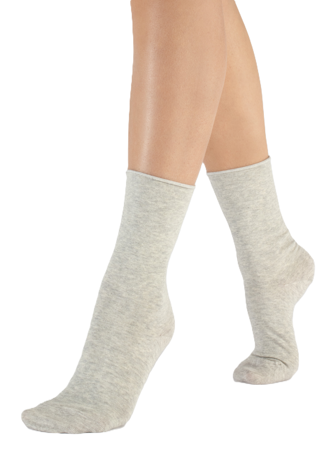 Korte sokjes in zachte katoenmix. Gladde teennaad. Met omgerolde niet knellende boord, super comfortabel.