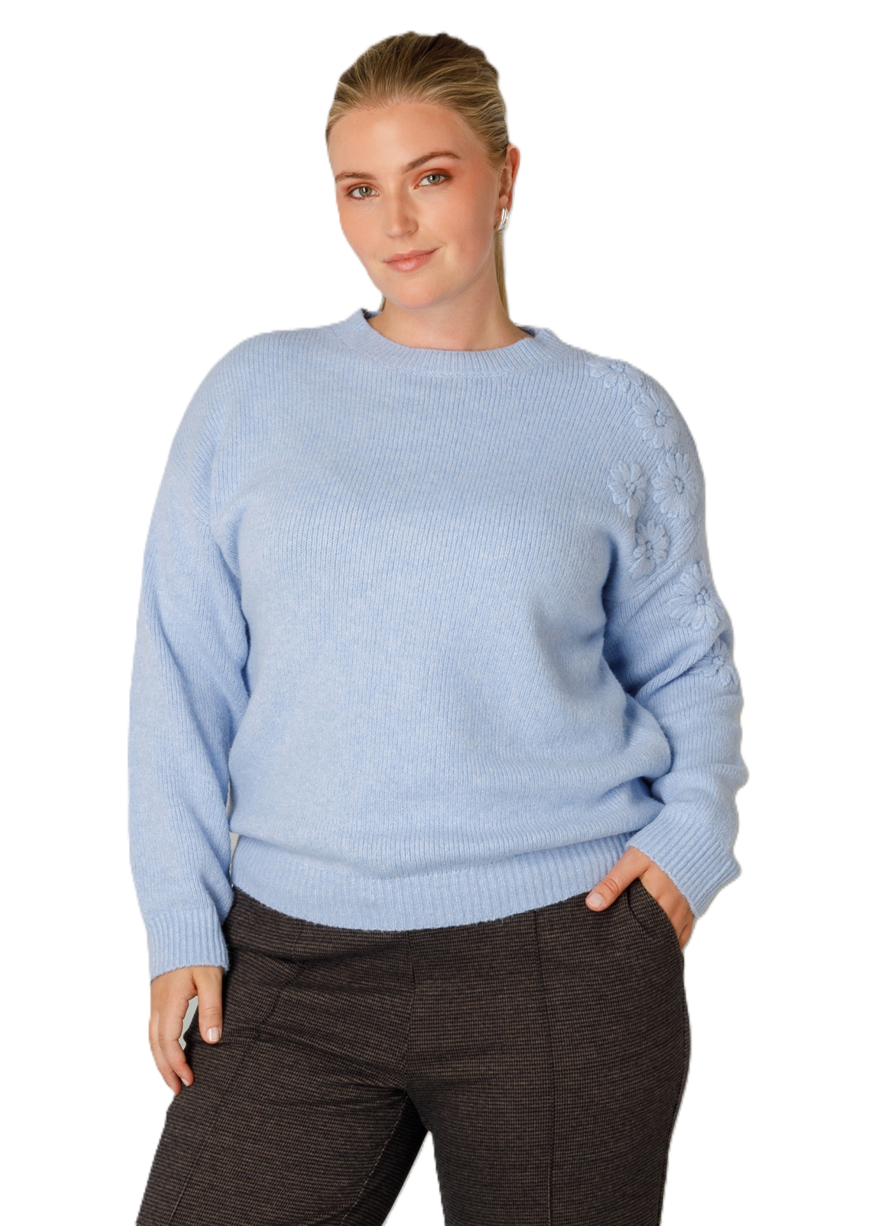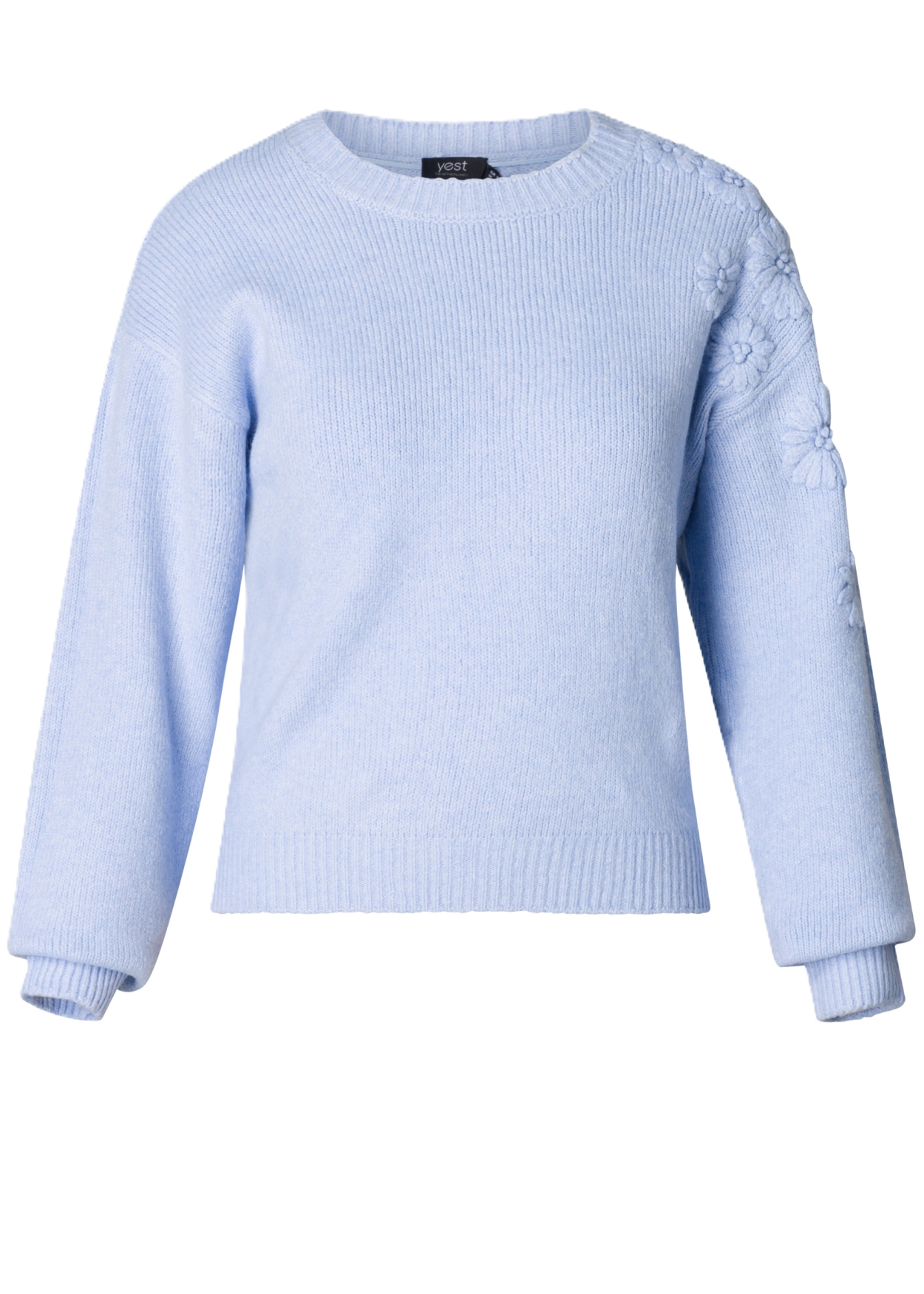 Deze comfortabele trui is een fijne combinatie van stijl en duurzaamheid. De zachte, gebreide stof met een mix van recycled polyester, wol en elastaan voelt heerlijk aan, en de tonale bloemenborduursels maken ?m net even extra speciaal.