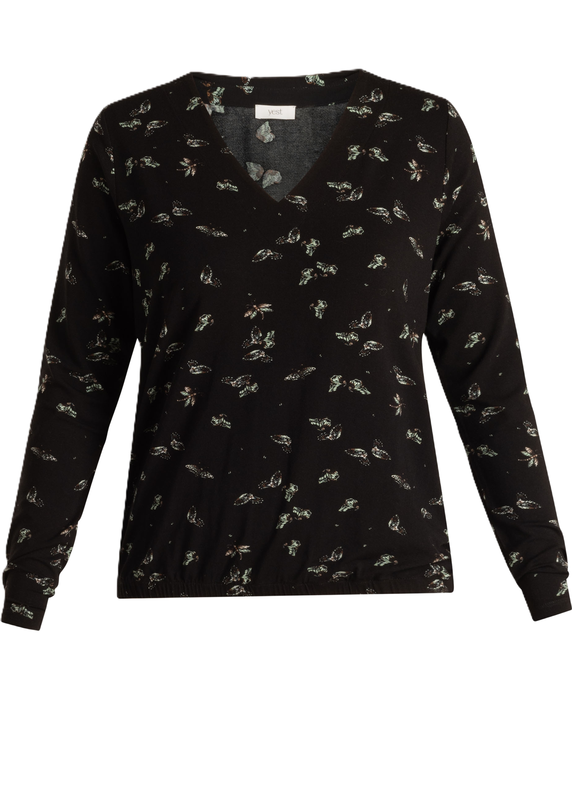 Deze longsleeve van Yest curve is uitgevoerd in zachte jersey van viscose met stretch, waardoor hij soepel en comfortabel draagt. Het model heeft een regular fit, een V-hals en een allover print die zorgt voor een speels accent. Lente 74 cm.