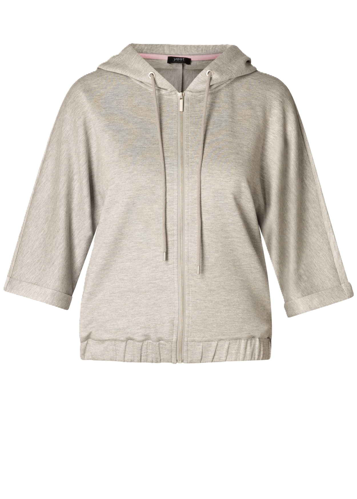 Dit vest valt lekker soepel door de jersey melange stof en is ideaal voor tussendoor met z'n driekwart mouwen en praktische rits. De capuchon geeft een sportieve touch, waardoor dit vest een makkelijk en stijlvol item is voor elke dag.