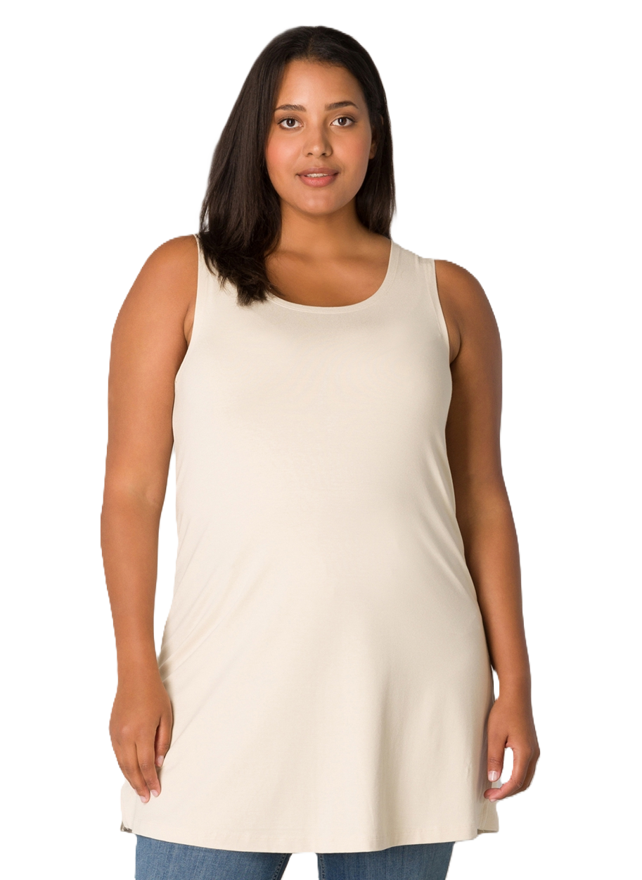 Abbigail is een halflange A lijn top van een zachte tricot viscose mix. Het model heeft een ronde hals en zijsplitten aan de onderkant. Lengte 82,5 cm.