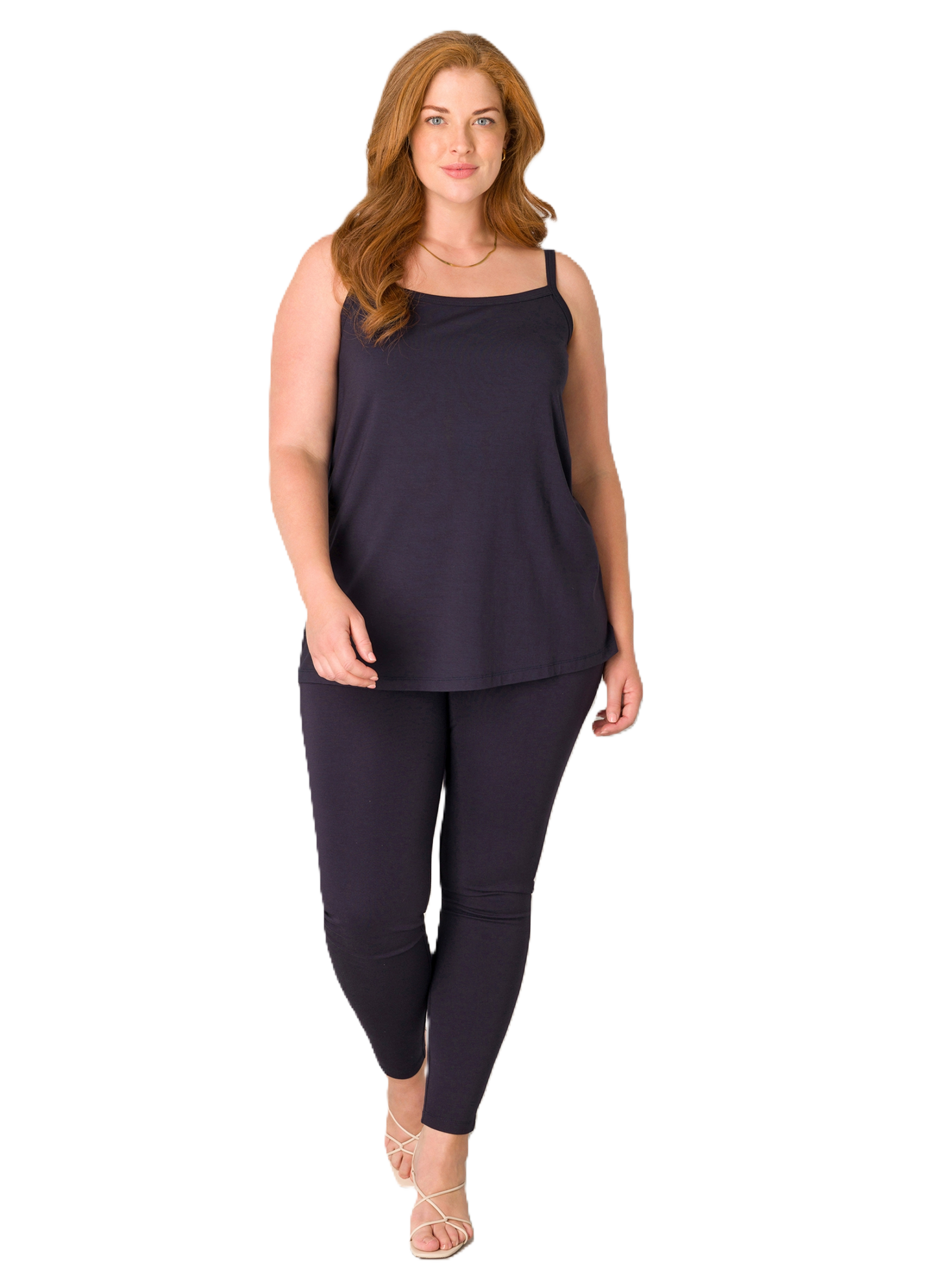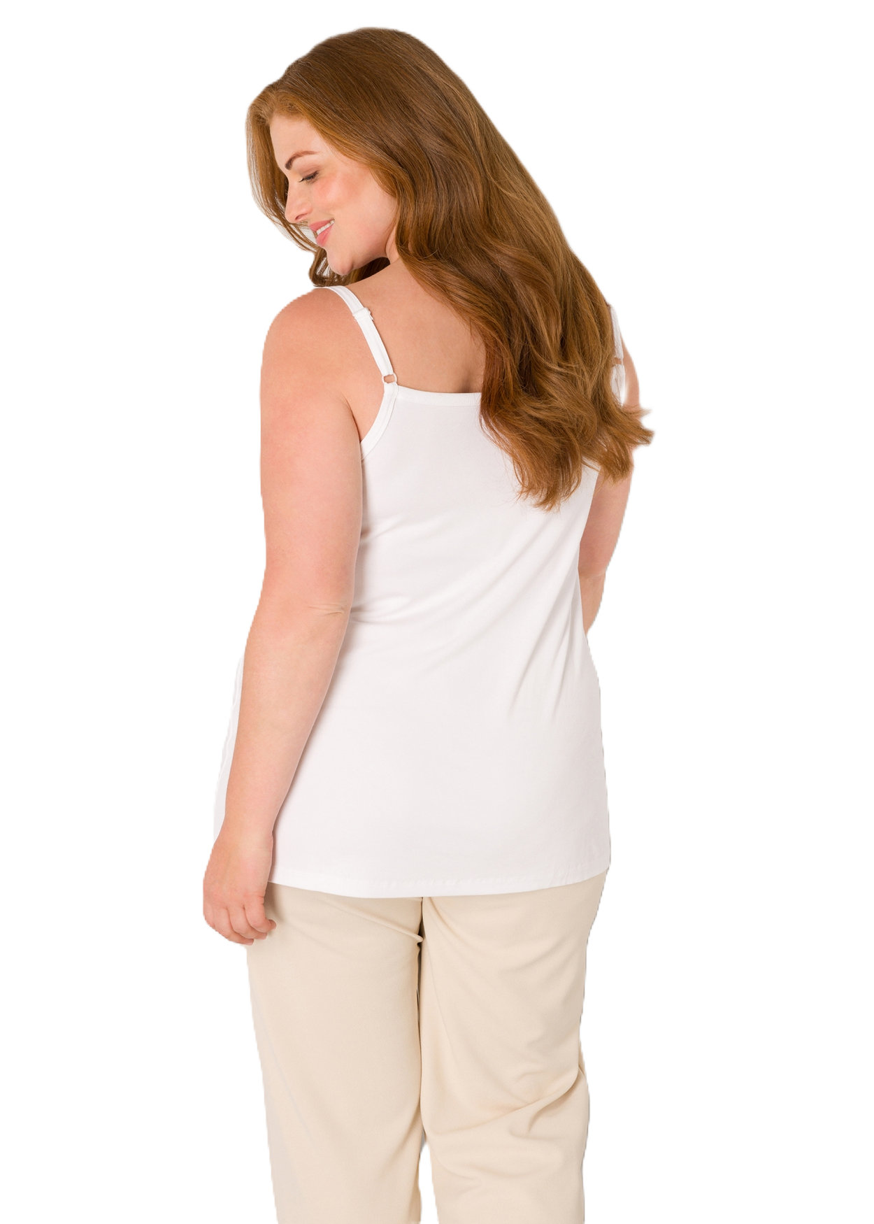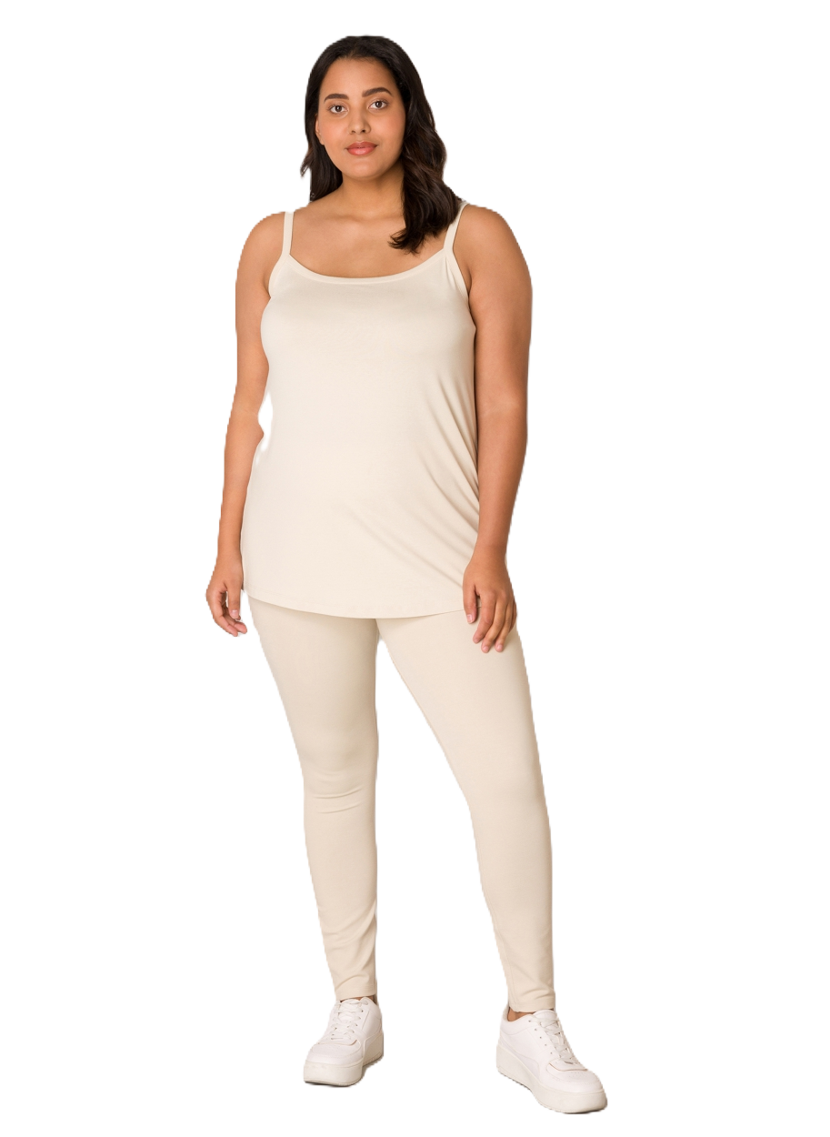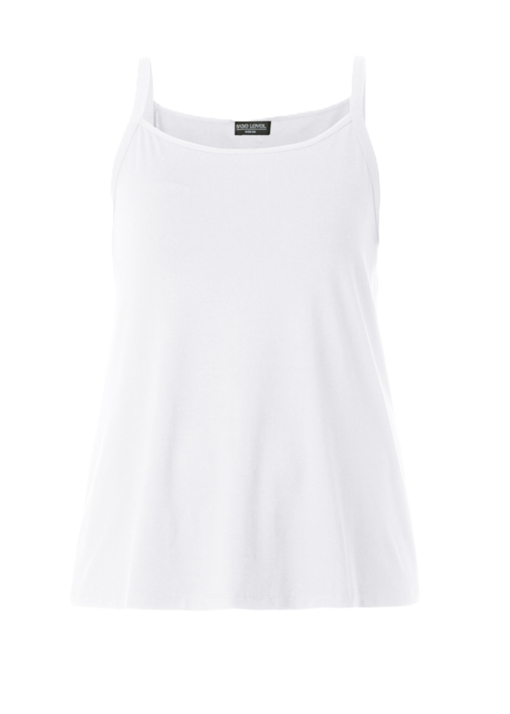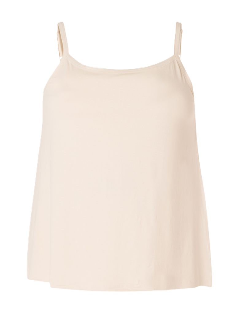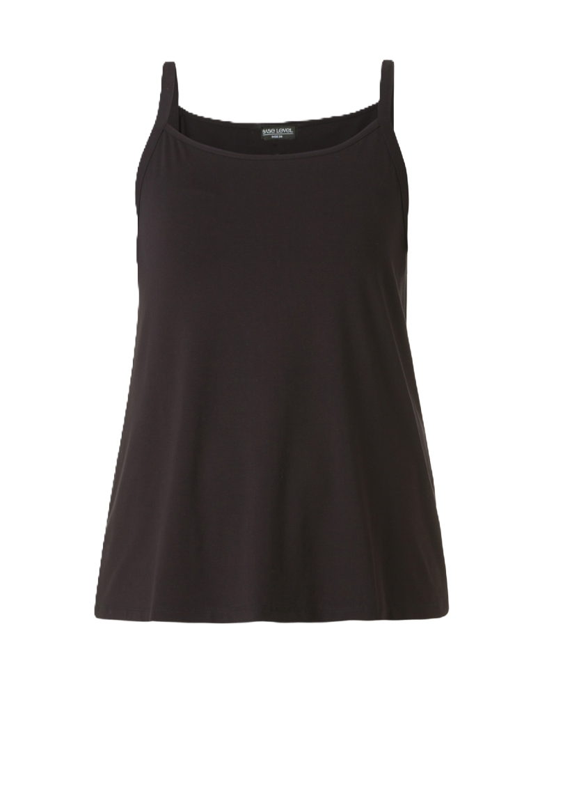 Alexa is een top van een zachte tricot viscose mix met verstelbare spaghetti bandjes. Lengte 69 cm.