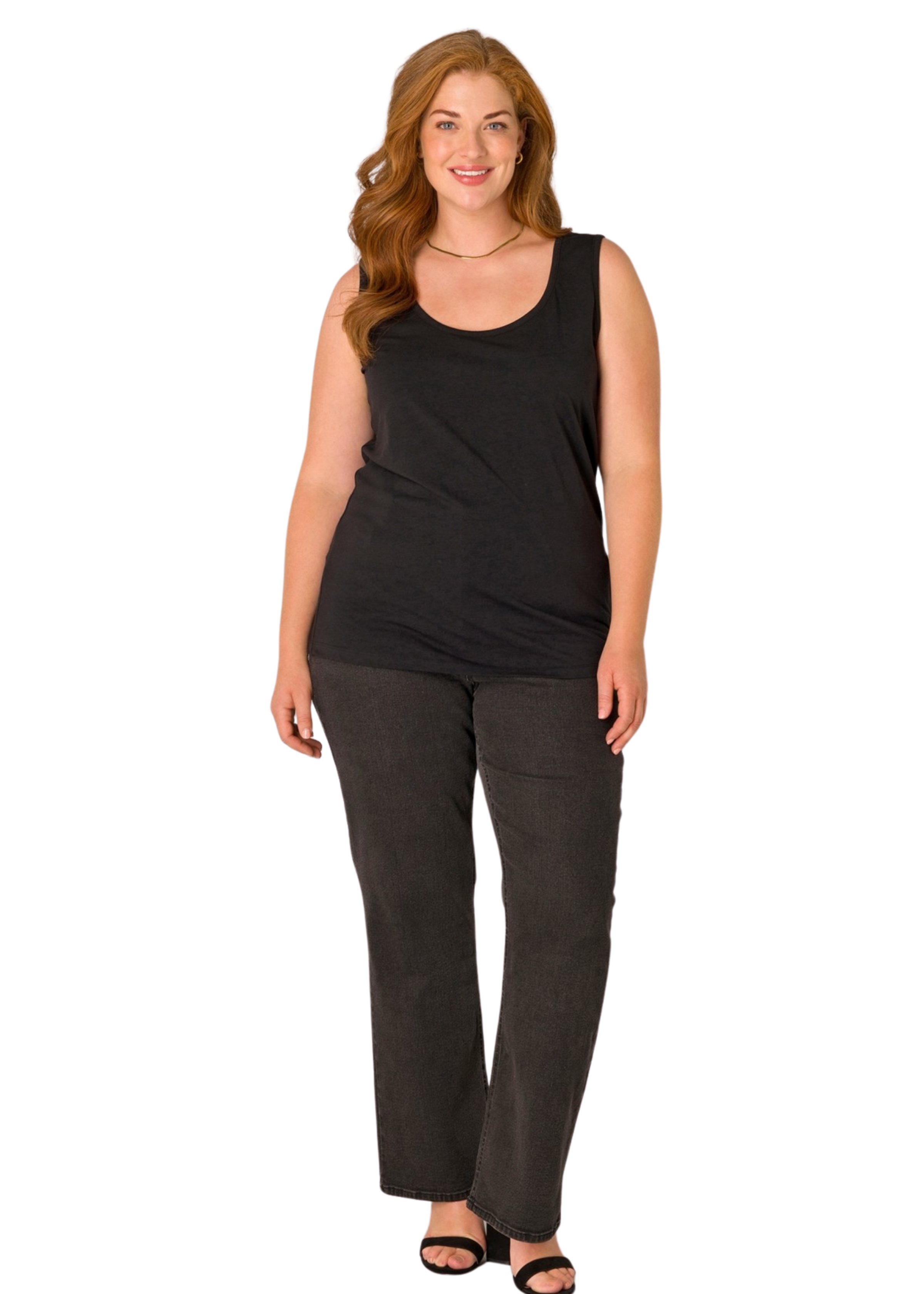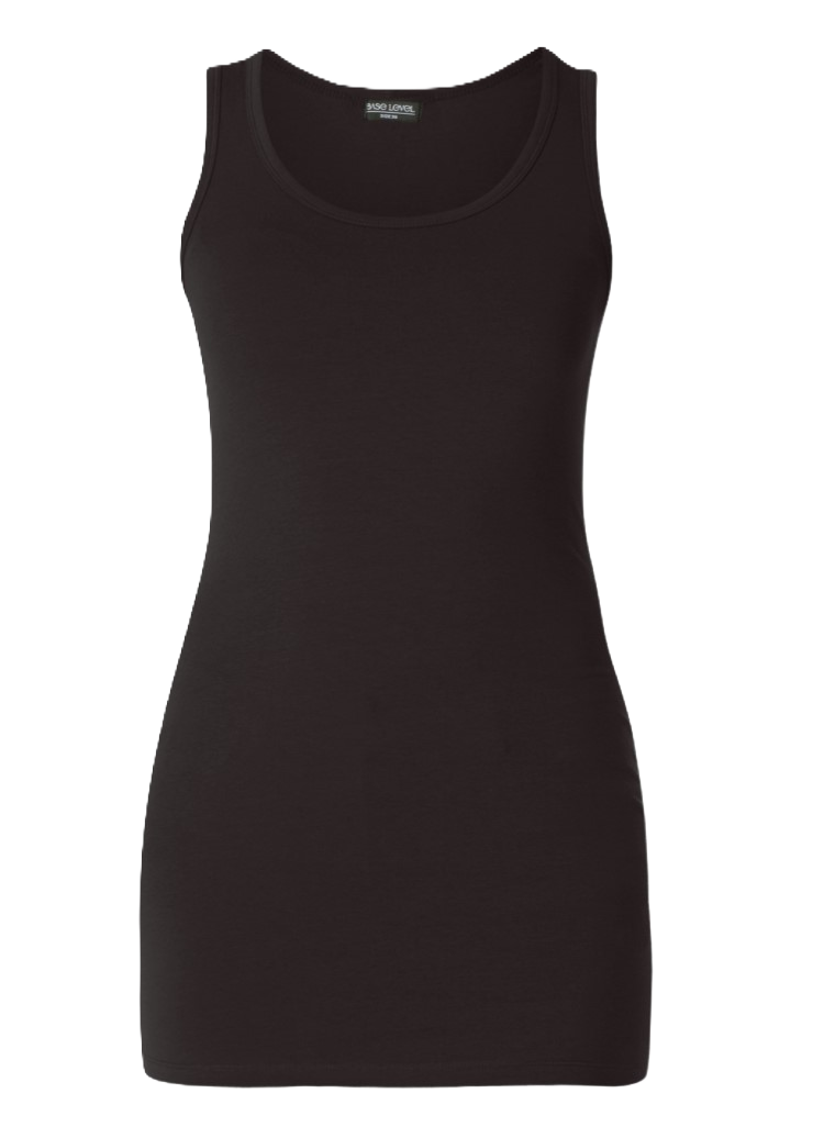 Amina is een basis lange basic katoenen tanktop met een ronde halslijn. Lengte 82 cm.