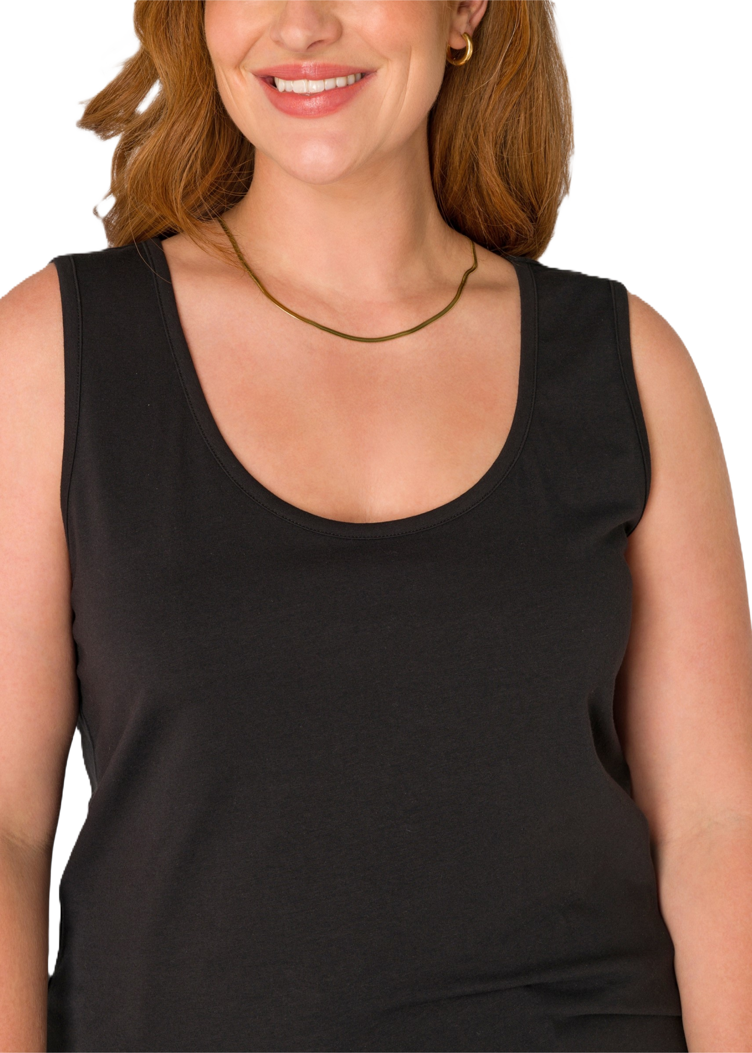 Yuppie is een nauwsluitende tanktop van BCI-katoen met een ronde halslijn. Lengte 72 cm.