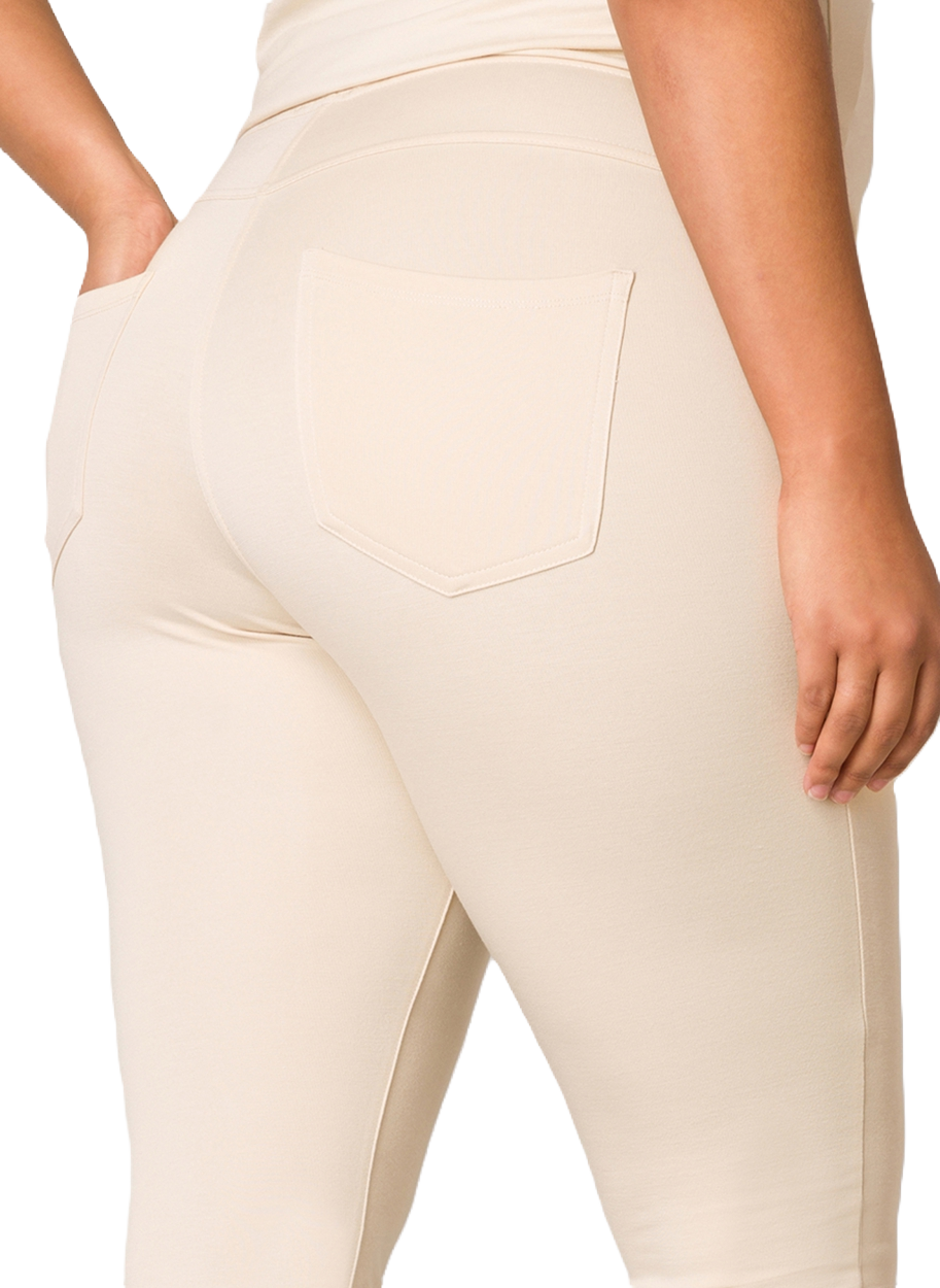 Arnika is een aangesloten tregging van een stevige elastische tricot kwaliteit, met doorgestike zakken op het voorpand. De lengte is 29 inch=76 cm.
