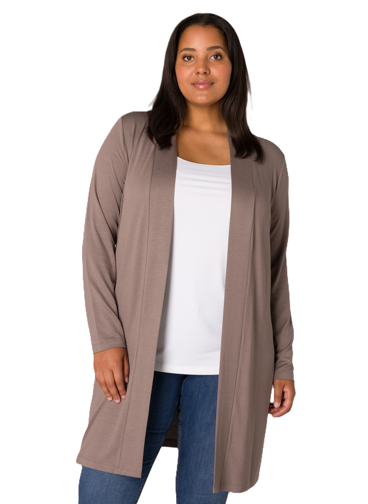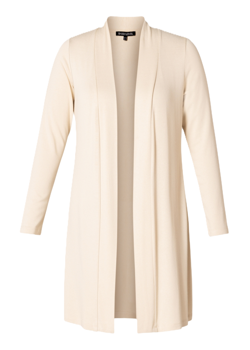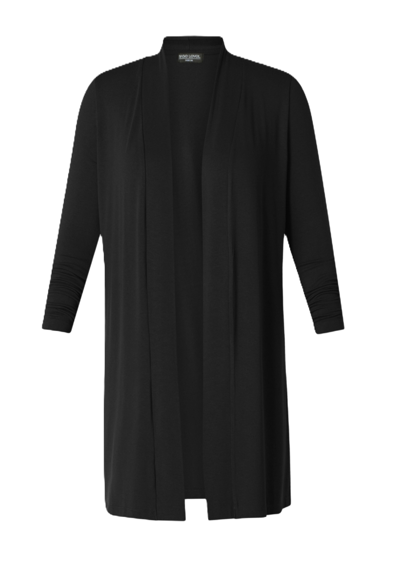 Ayla is een medium lang fijngebreid vest van een zachte viscosemix. Lengte 95 cm.