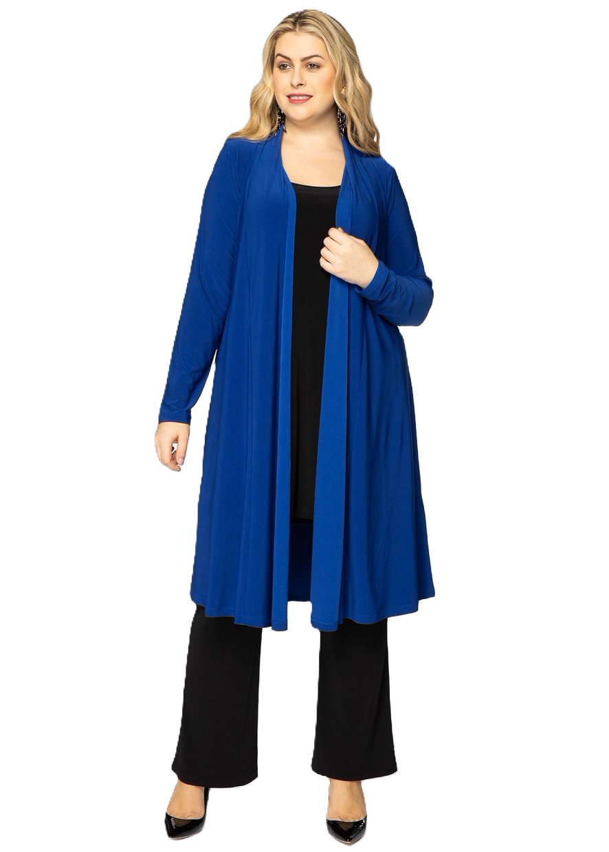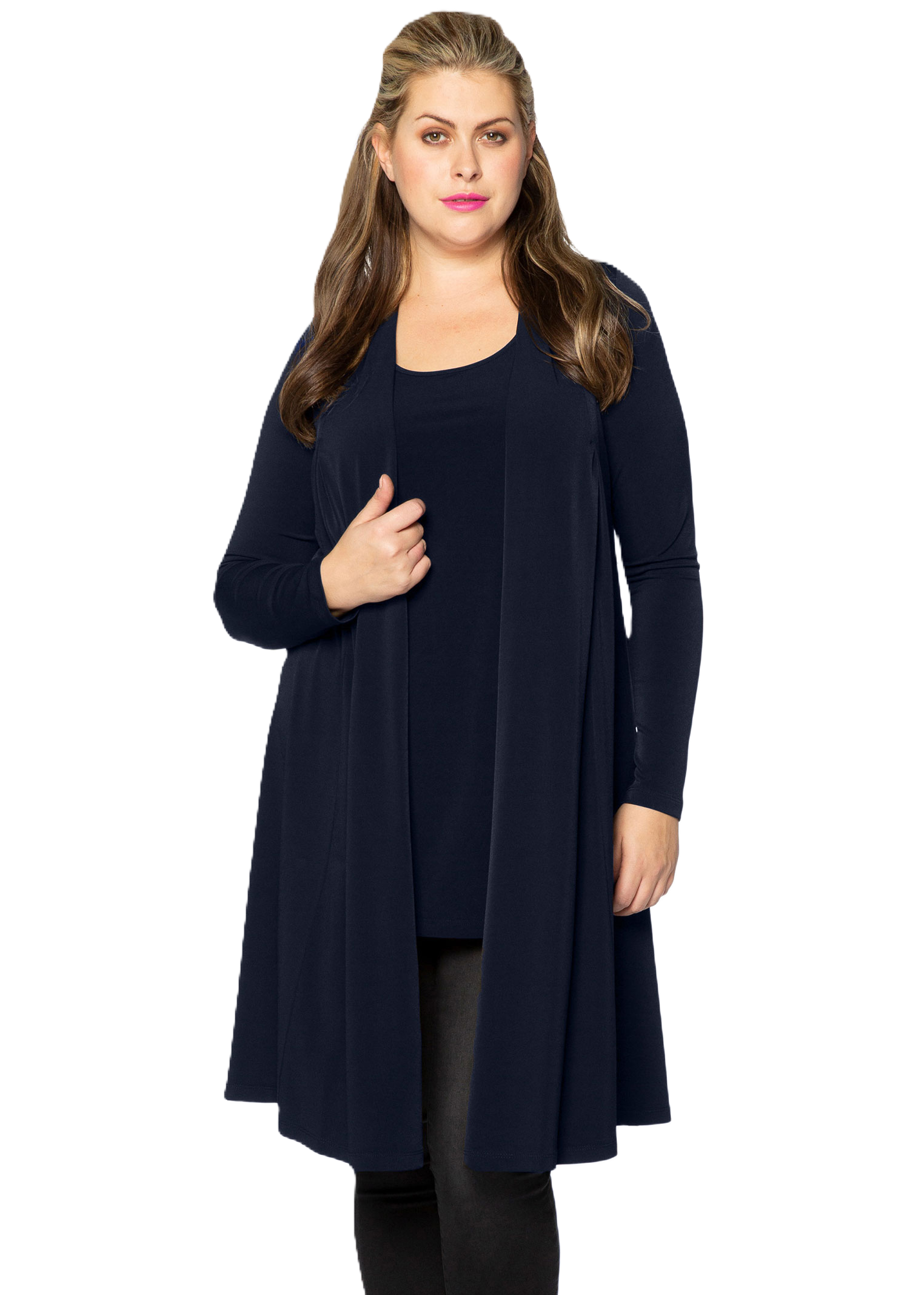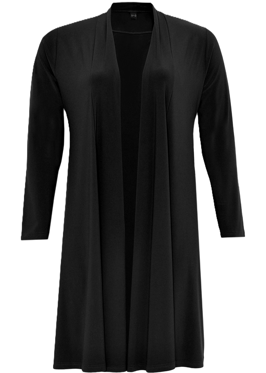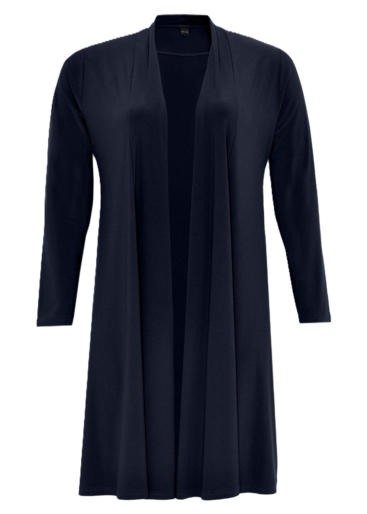 Een lang vest, gemaakt van het zachte Dolce materiaal. Het vest heeft een shawlkraag en een open voorkant. Het perfecte item om over iedere top of jurk te dragen.